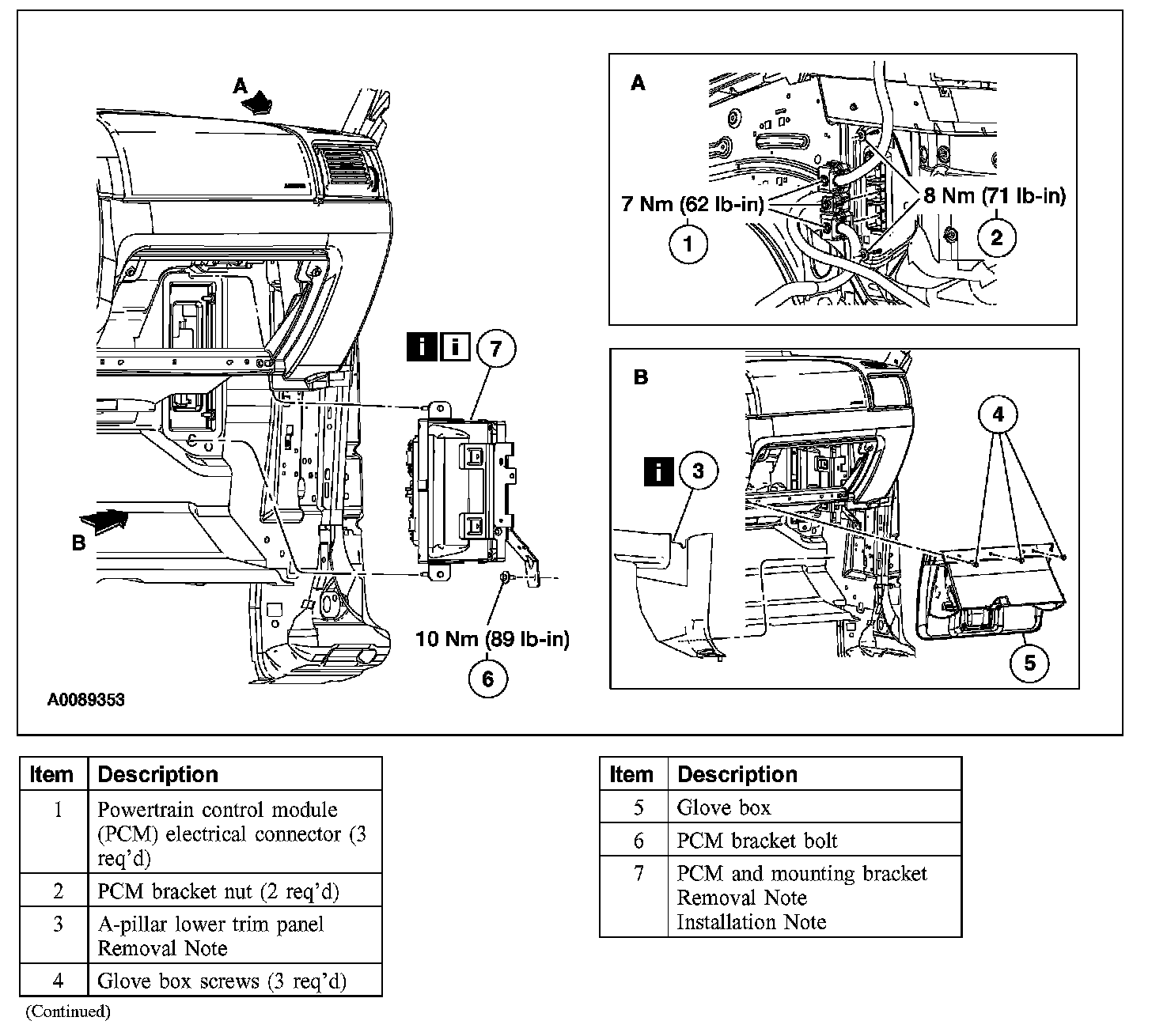 Item 7: PCM and Mounting Bracket Removal Note