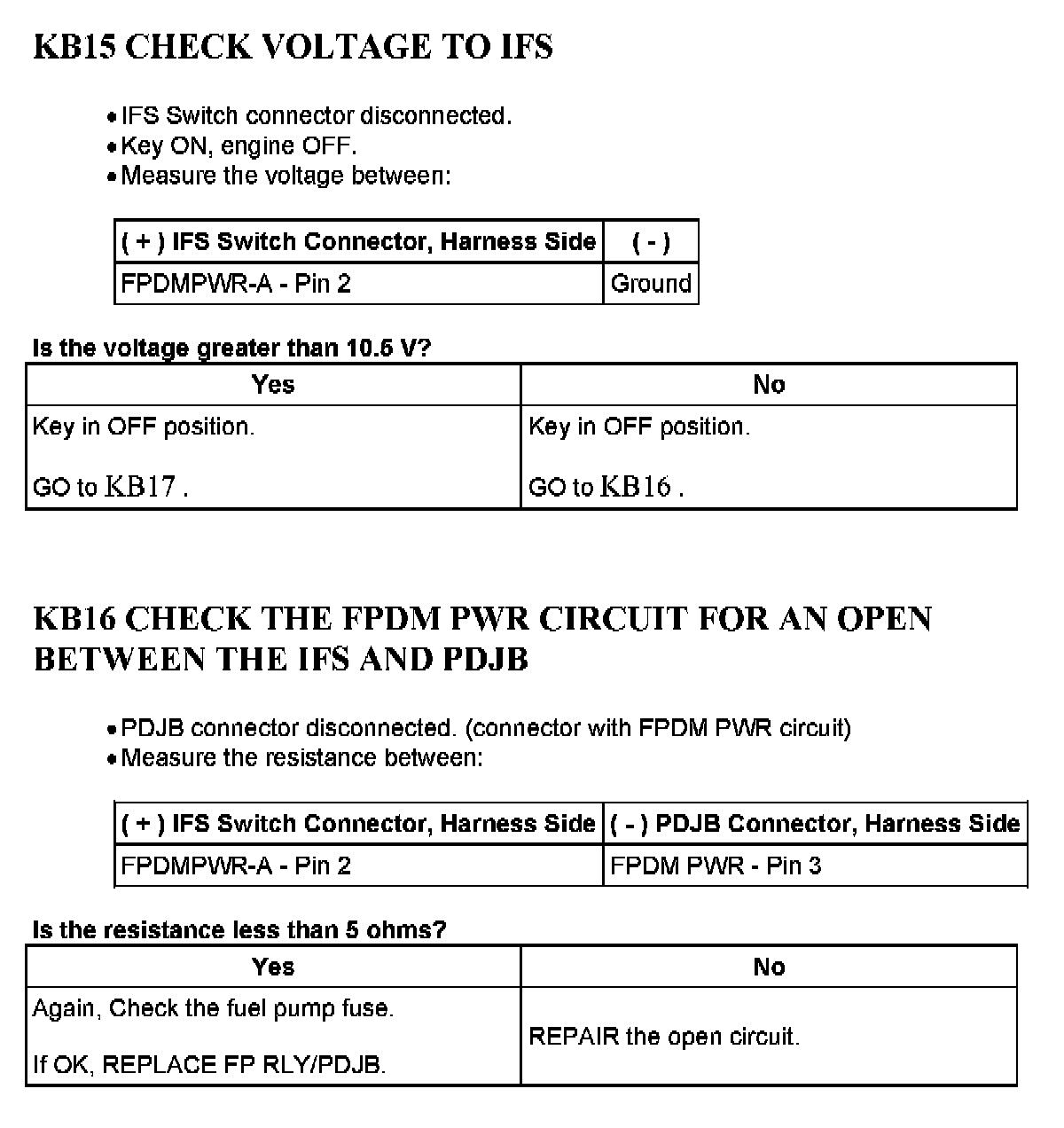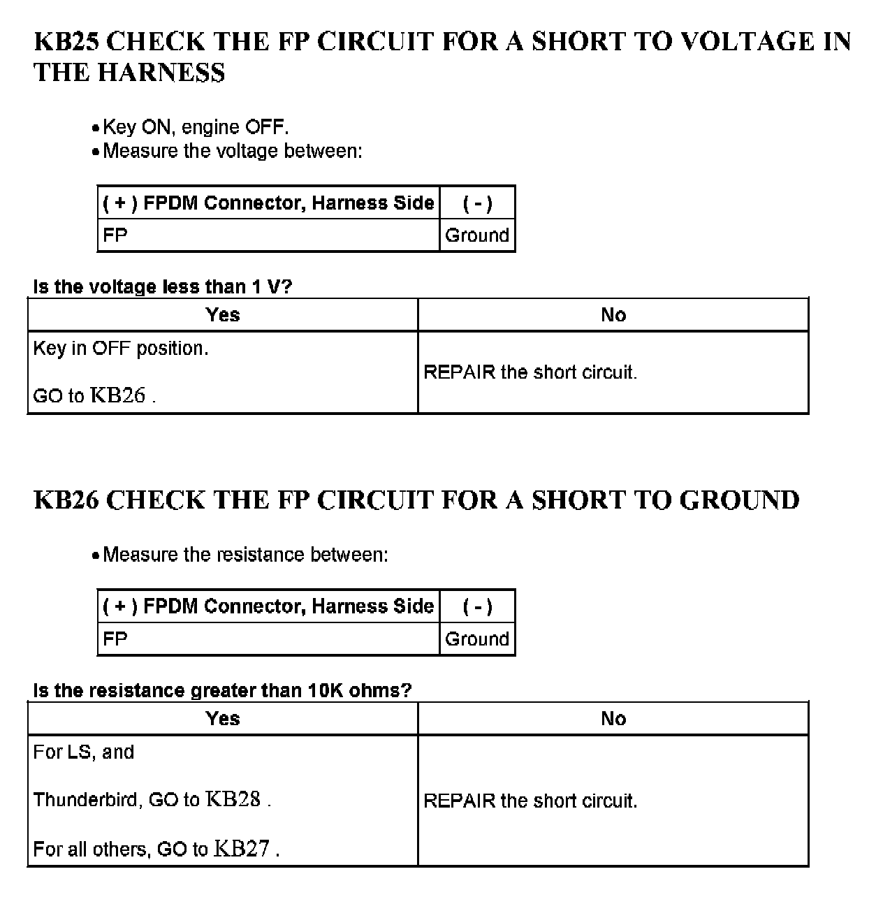 Home >> Ford >> 2004 >> Explorer 4WD V6-4.0L VIN E >> Repair and Diagnosis >> Powertrain Management >> Computers and Control Systems >> Testing and Inspection >> Pinpoint Tests >> Tests KB: Fuel Pump Driver Module