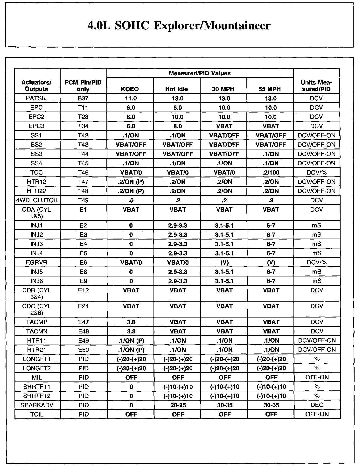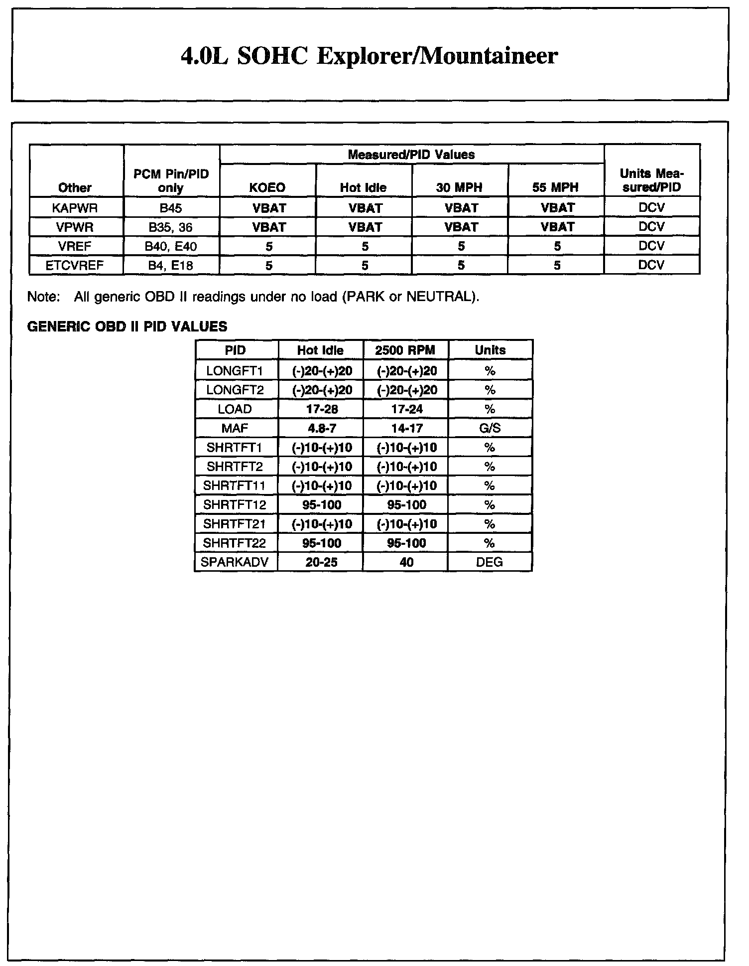 Home >> Ford >> 2004 >> Explorer 4WD V6-4.0L VIN E >> Repair and Diagnosis >> Powertrain Management >> Computers and Control Systems >> Testing and Inspection >> Scan Tool Testing and Procedures >> Reference Values >> Typical Diagnostic Reference Values