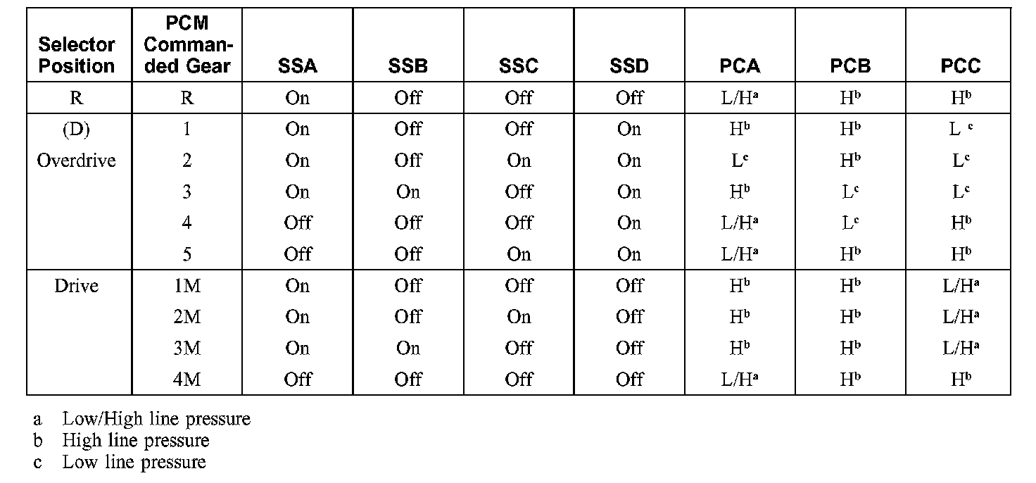 Solenoid Operation Chart