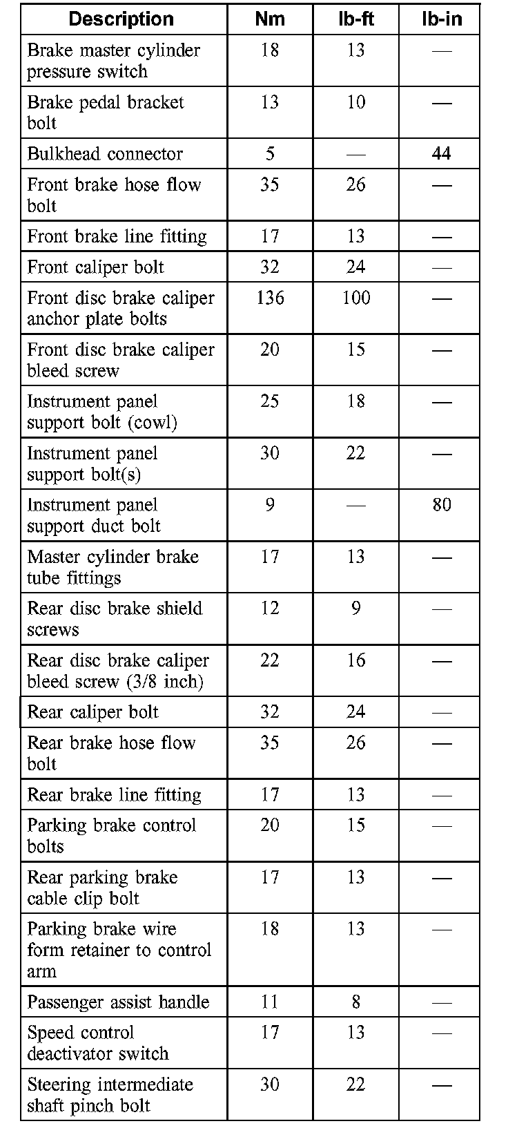 Torque Specifications