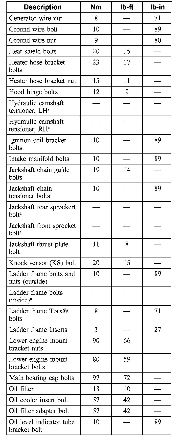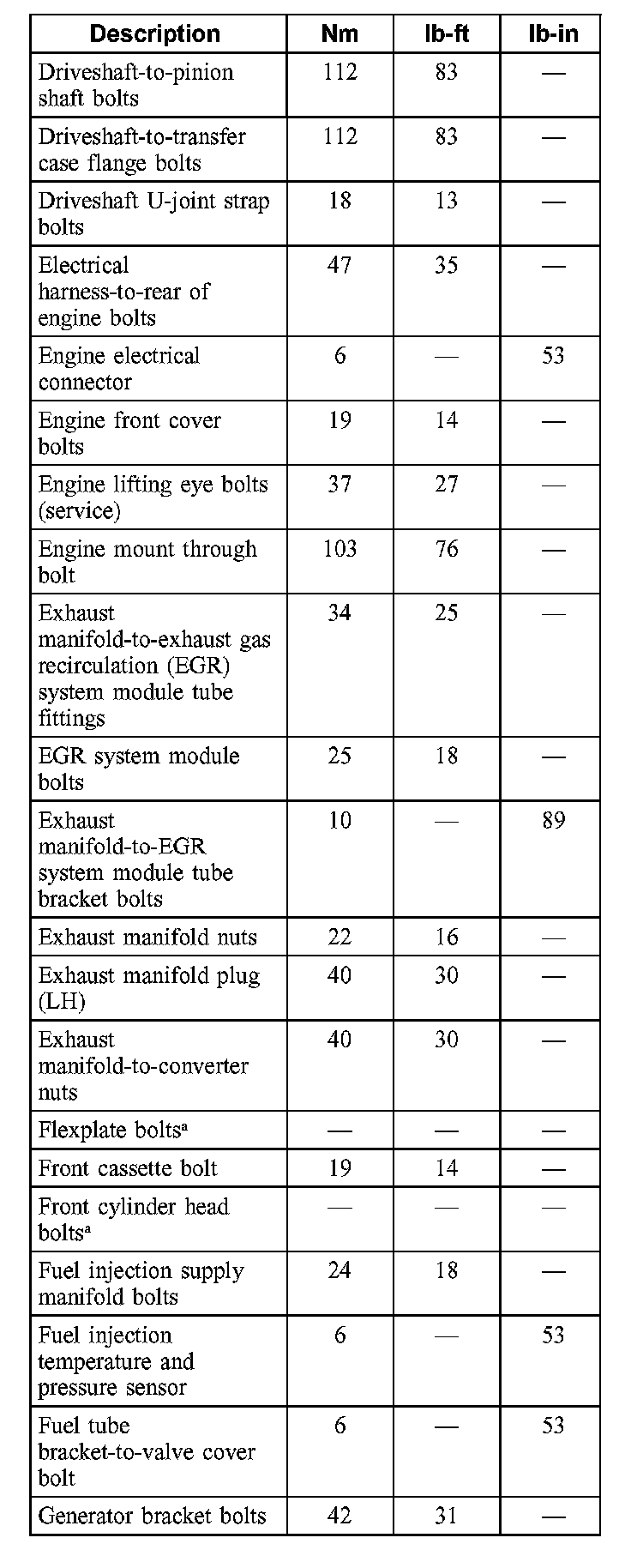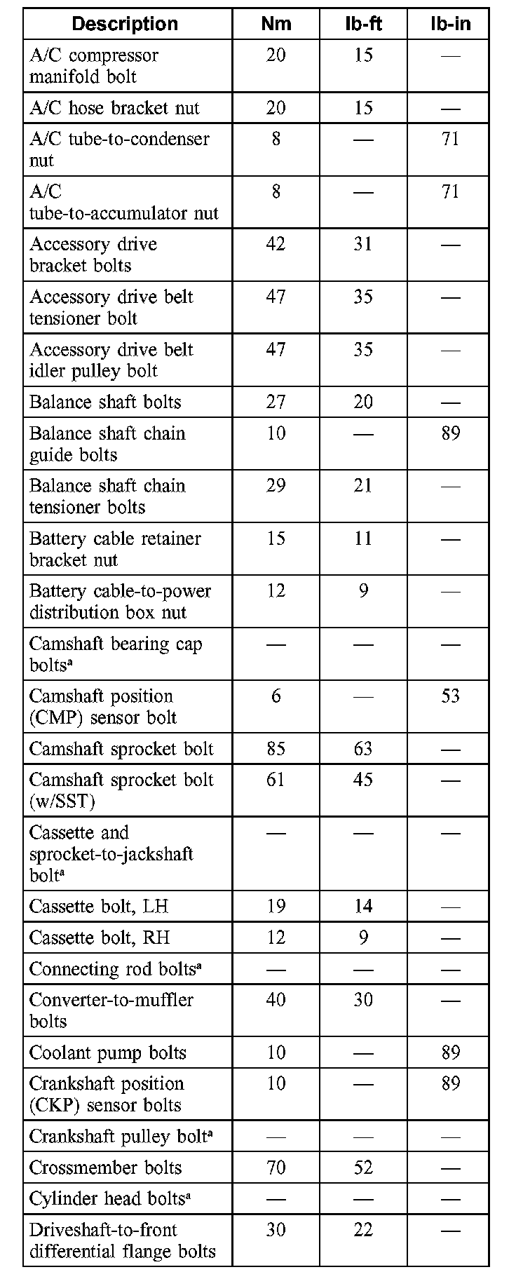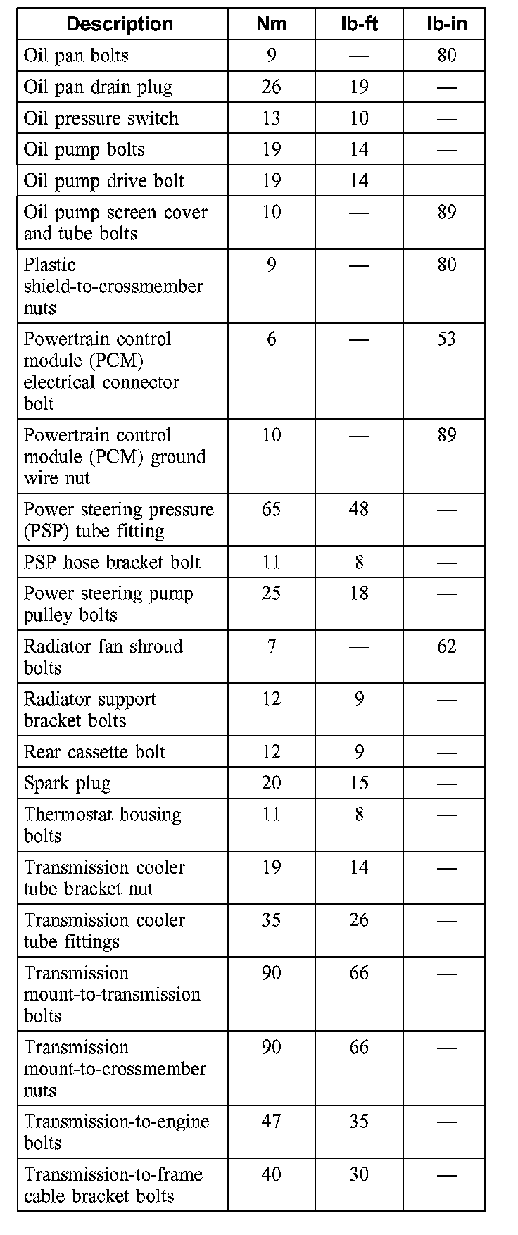 Torque Specifications