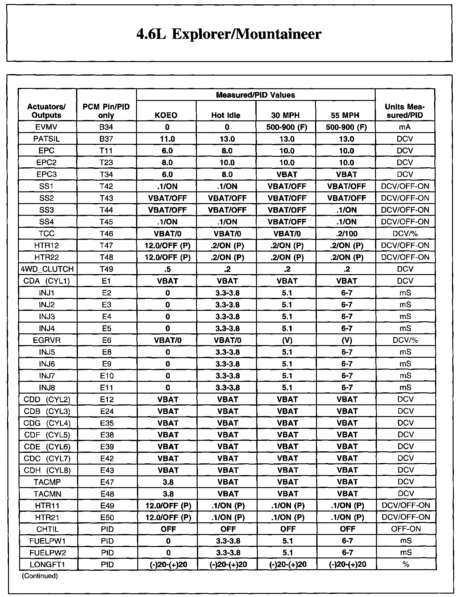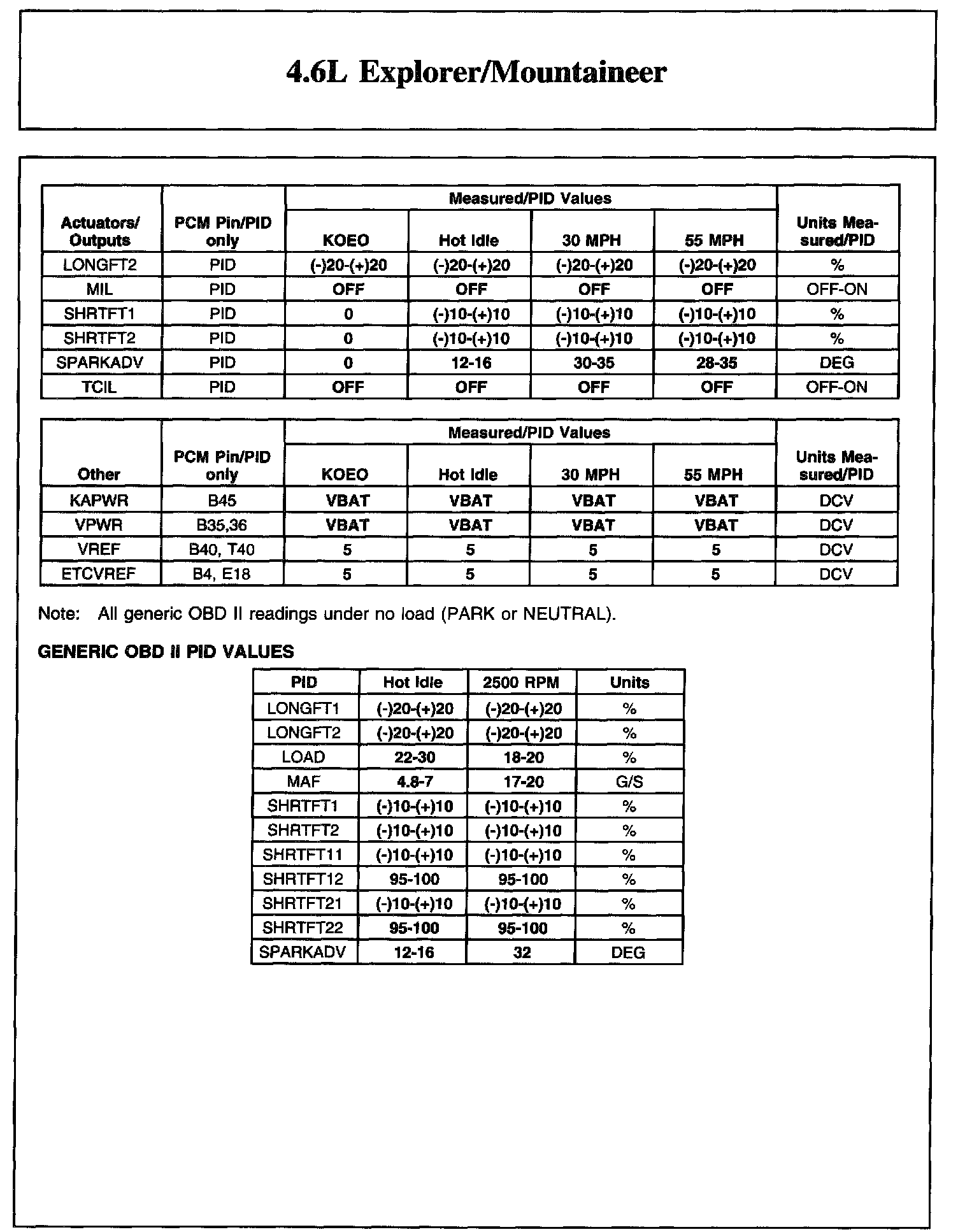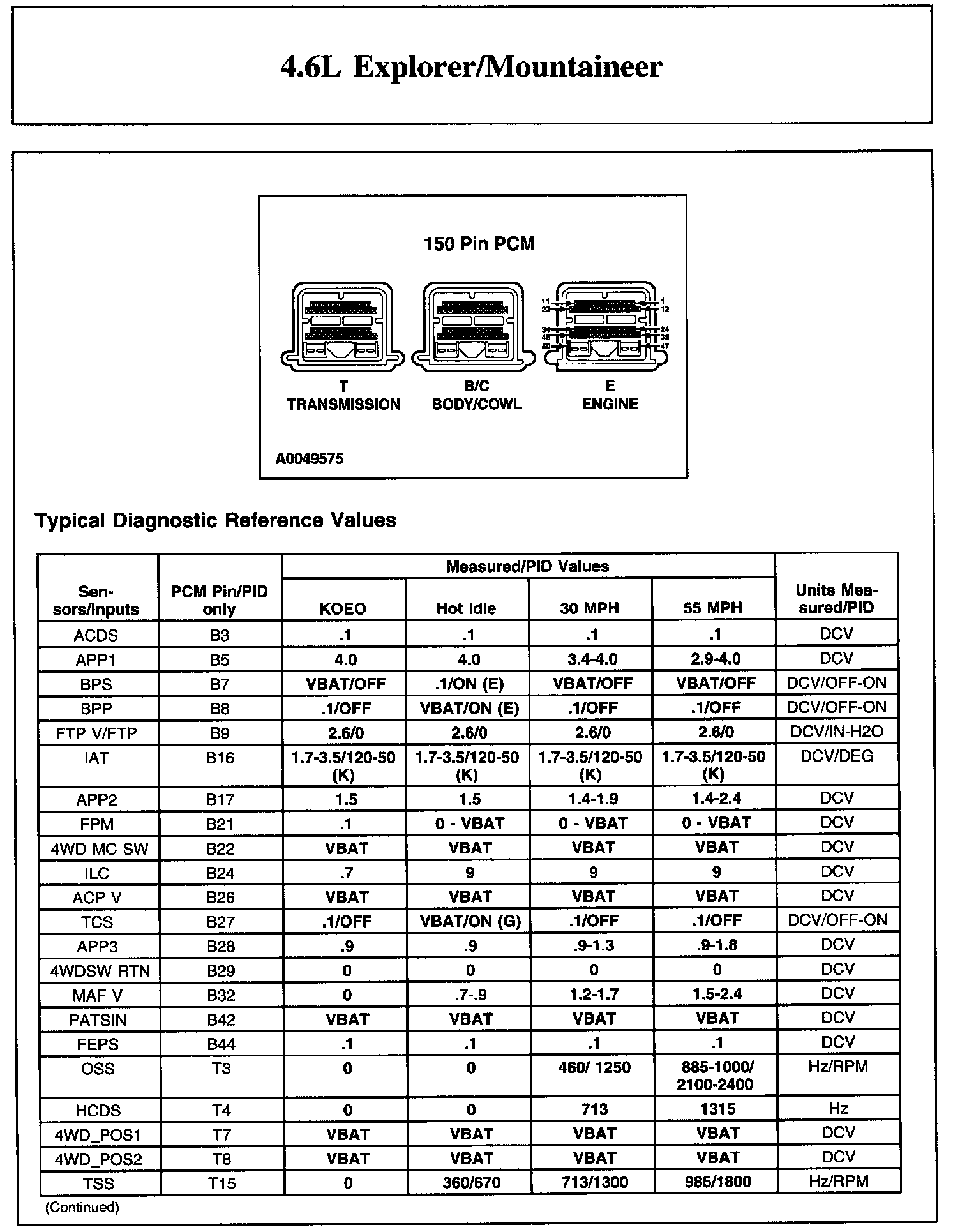 Home >> Ford >> 2004 >> Explorer 4WD V8-4.6L SOHC VIN W >> Repair and Diagnosis >> Powertrain Management >> Computers and Control Systems >> Testing and Inspection >> Scan Tool Testing and Procedures >> Reference Values >> Typical Diagnostic Reference Values