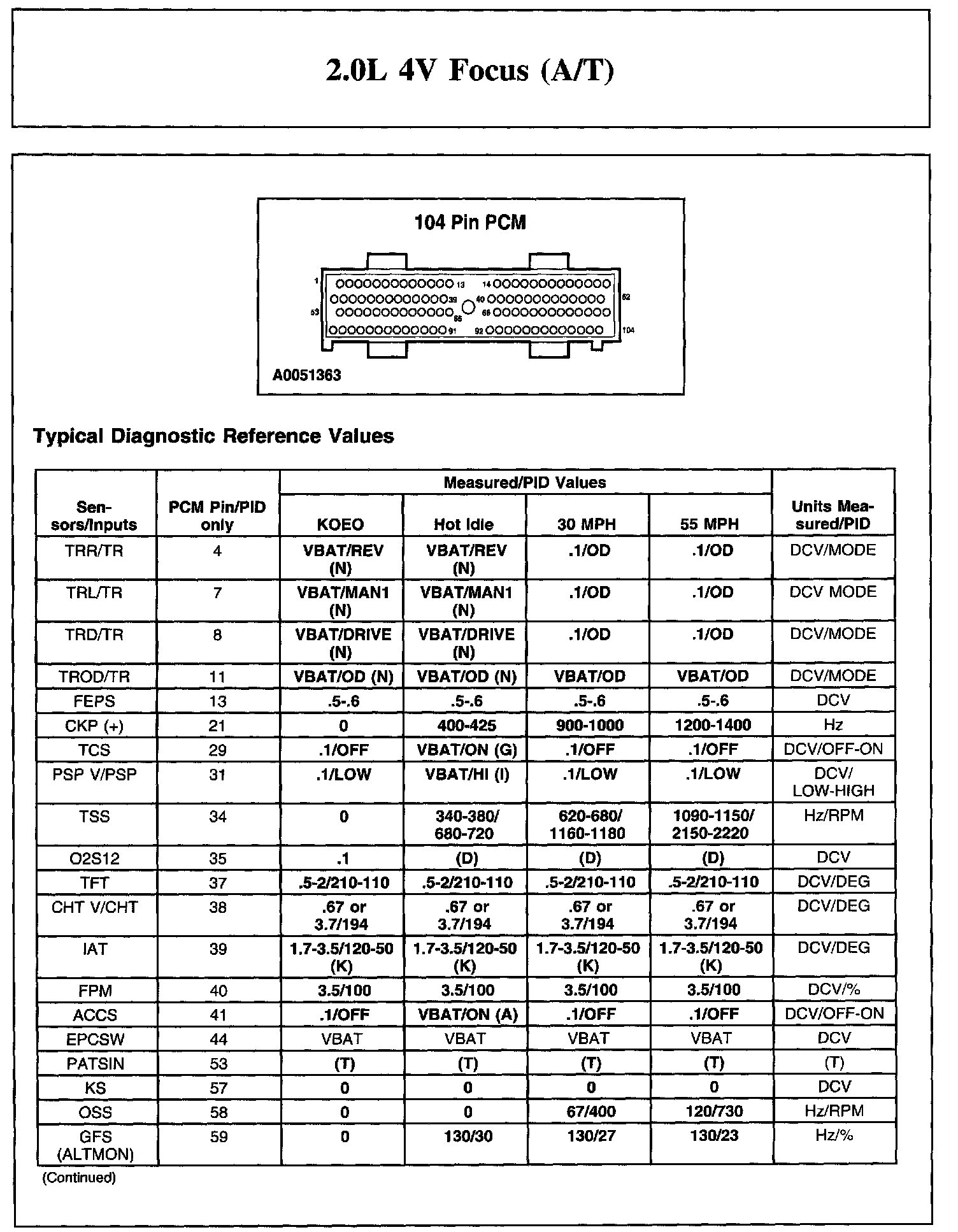 2.0L 4V Focus (A/T)
