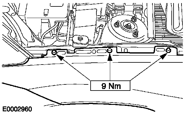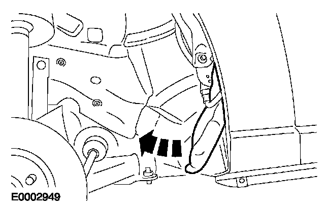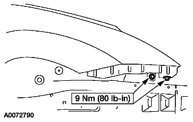 - Tighten the front bolt on the edge of the fender apron panel.