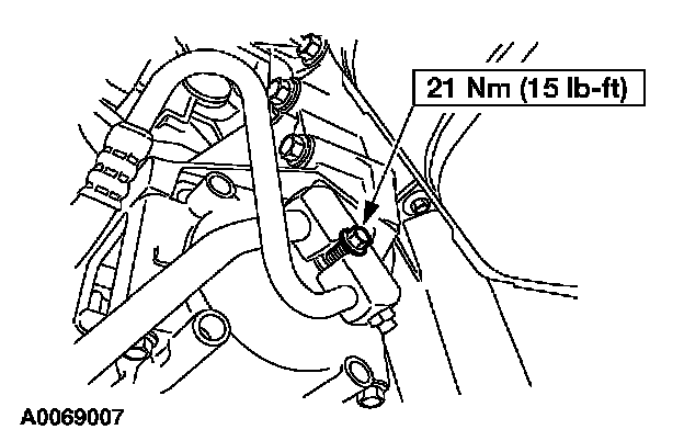 6. Remove the bolts and position the power steering line aside.