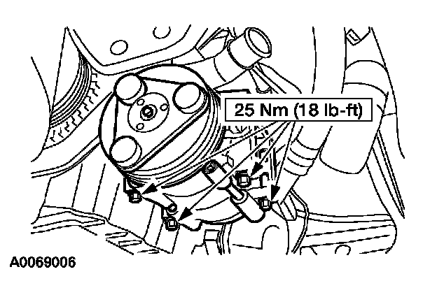 7. Remove the three compressor bolts and lower the A/C compressor.