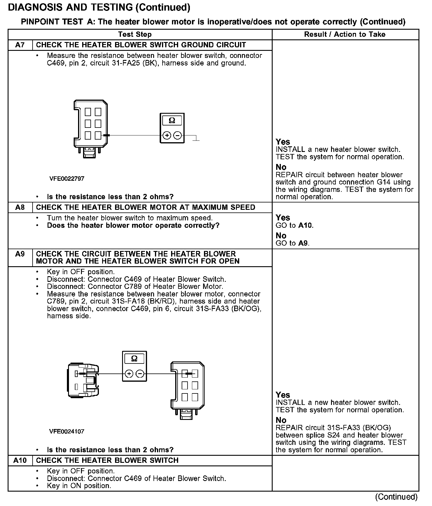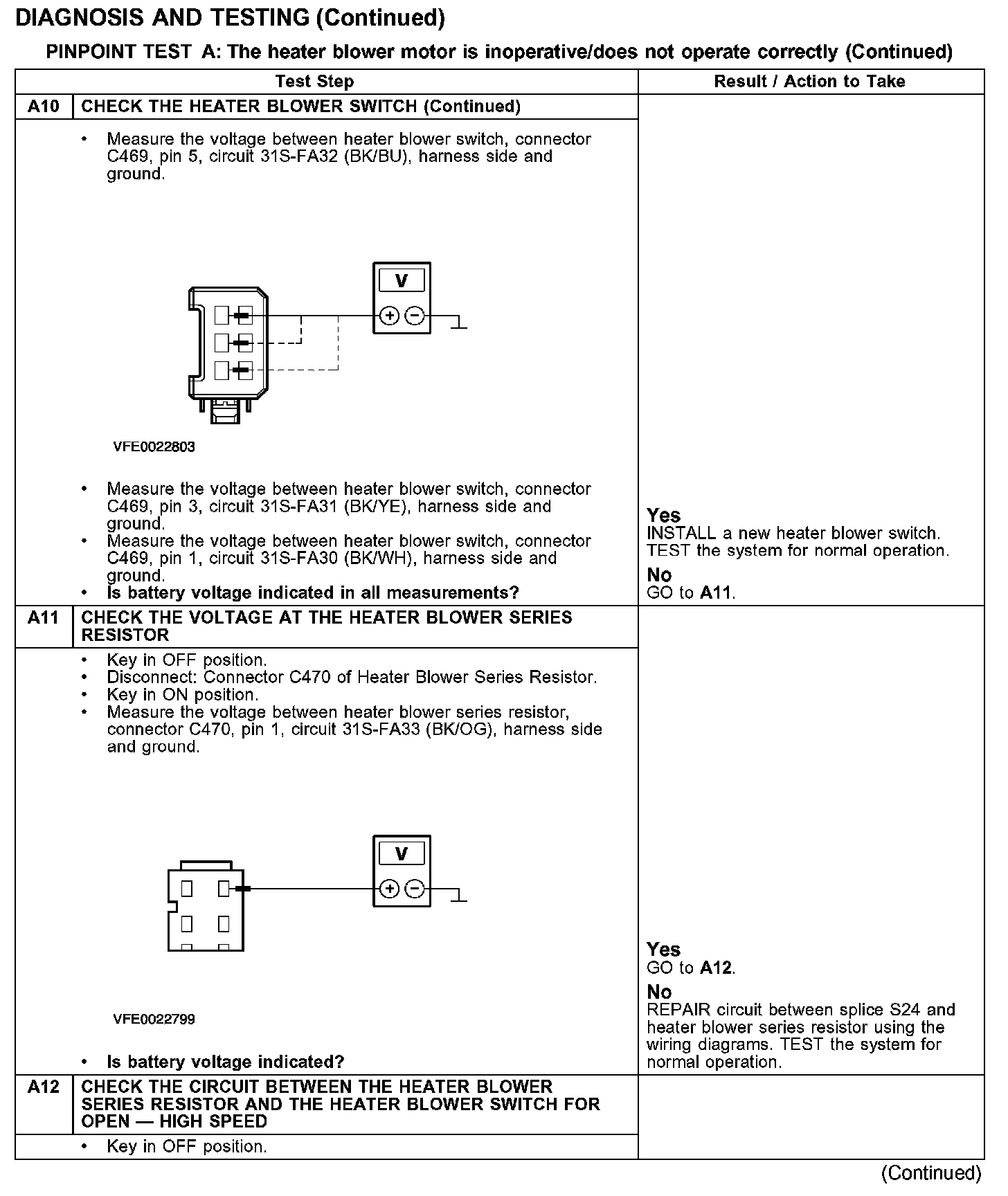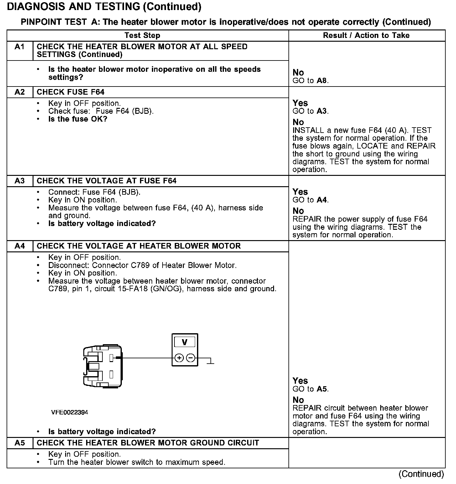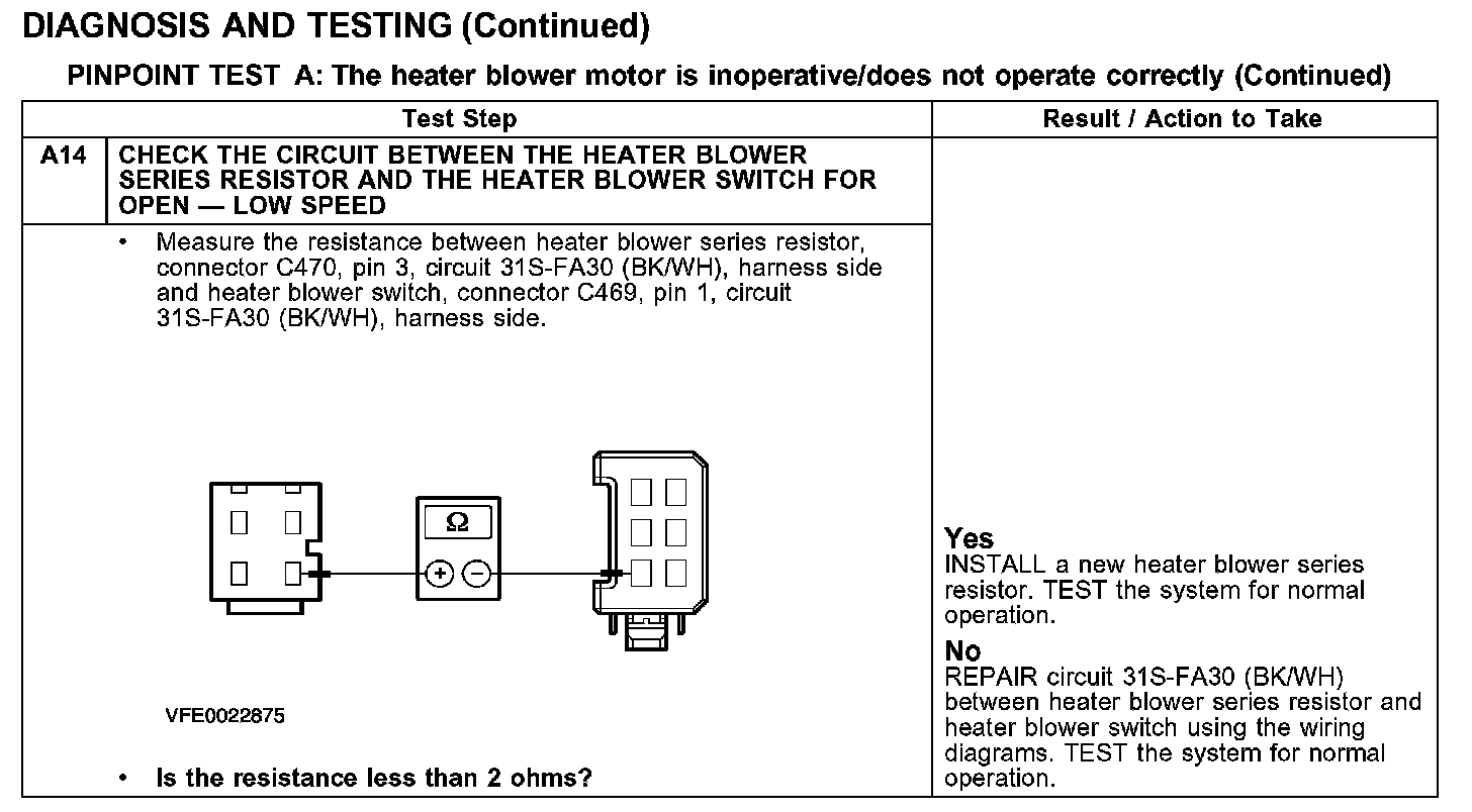 PINPOINT TEST A: THE HEATER BLOWER MOTOR IS INOPERATIVE/DOES NOT OPERATE CORRECTLY