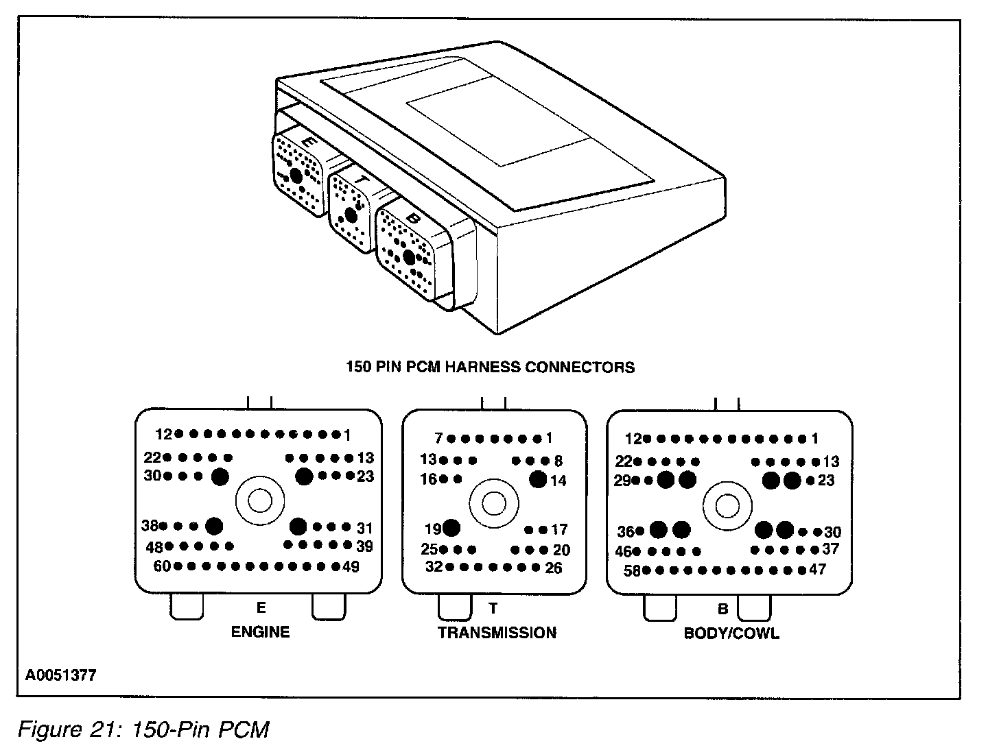 The natural gas (NG) vehicle module (Figure 24) provides two functions. The first function operates the fuel injectors and is referred to as the injector driver module (IDM). The second function sends a fuel level indicator signal to drive the fuel gauge and is called the fuel indicator module (FIM). IDM NG vehicle fuel indicator driver signals are based on powertrain control module (PCM) fuel injector driver signals and are controlled directly by the corresponding injector drivers in the PCM. The IDM must be used to provide the NG fuel injectors with the required high current necessary for proper operation. The greater demand of NG fuel injector current warrants an increased size of the injector driver and increased heat dissipation. Given these conditions, the PCM would not be suitable for placement of these drivers. The IDM closely resembles the Electronic Engine Control 60 Pin PCM module in appearance. This style of module is used on the NG F-Series and Crown Victoria, while a 90 pin Alternative Fuel Control Module (AFCM) (Figure 25) is used on the E-Series.