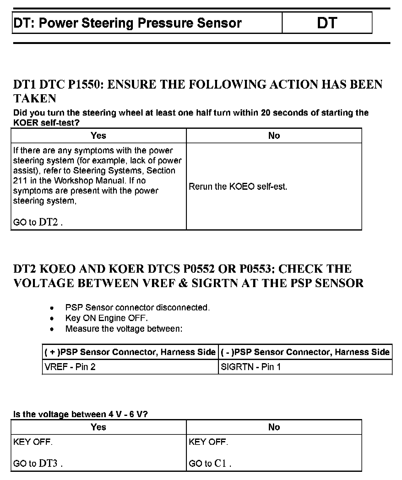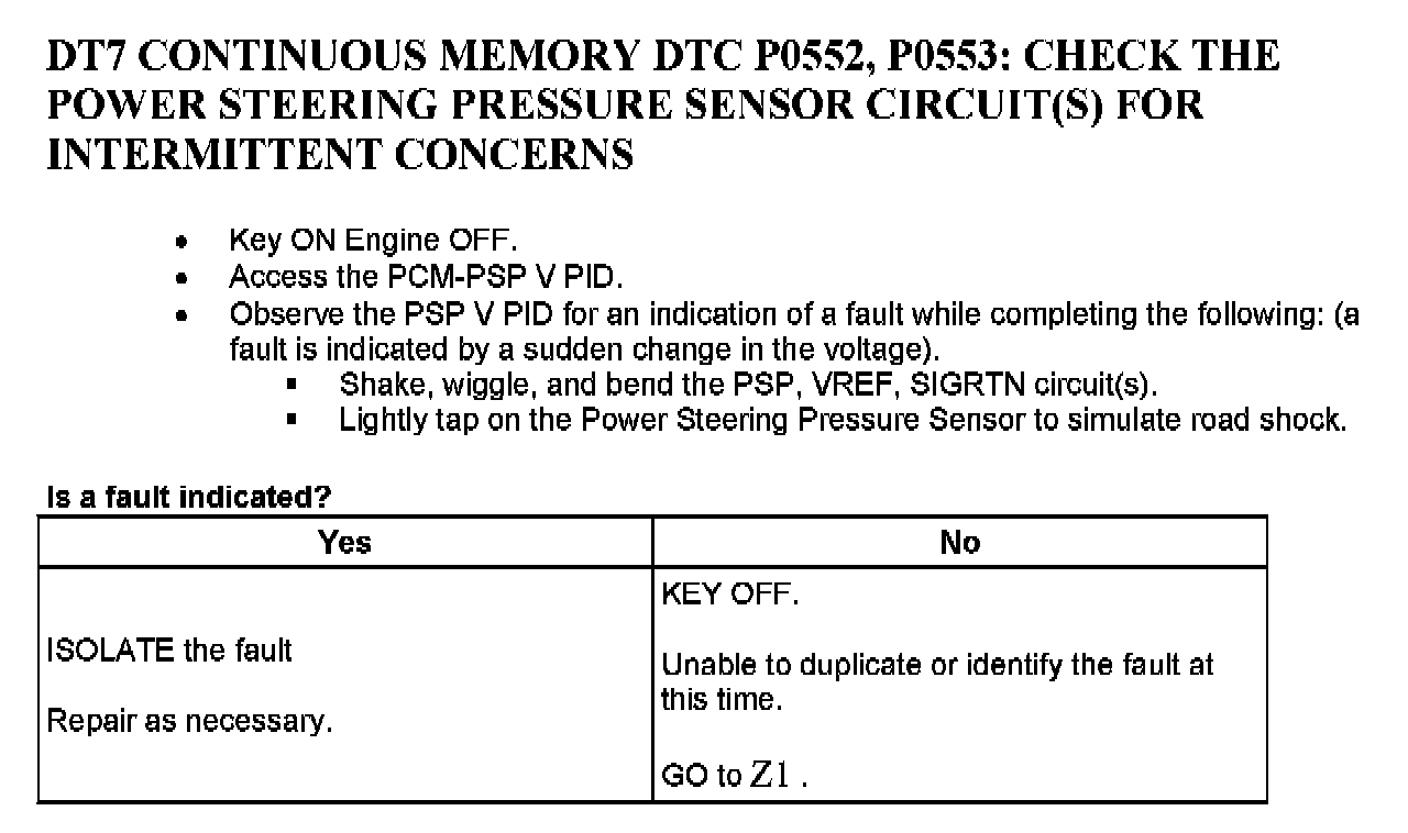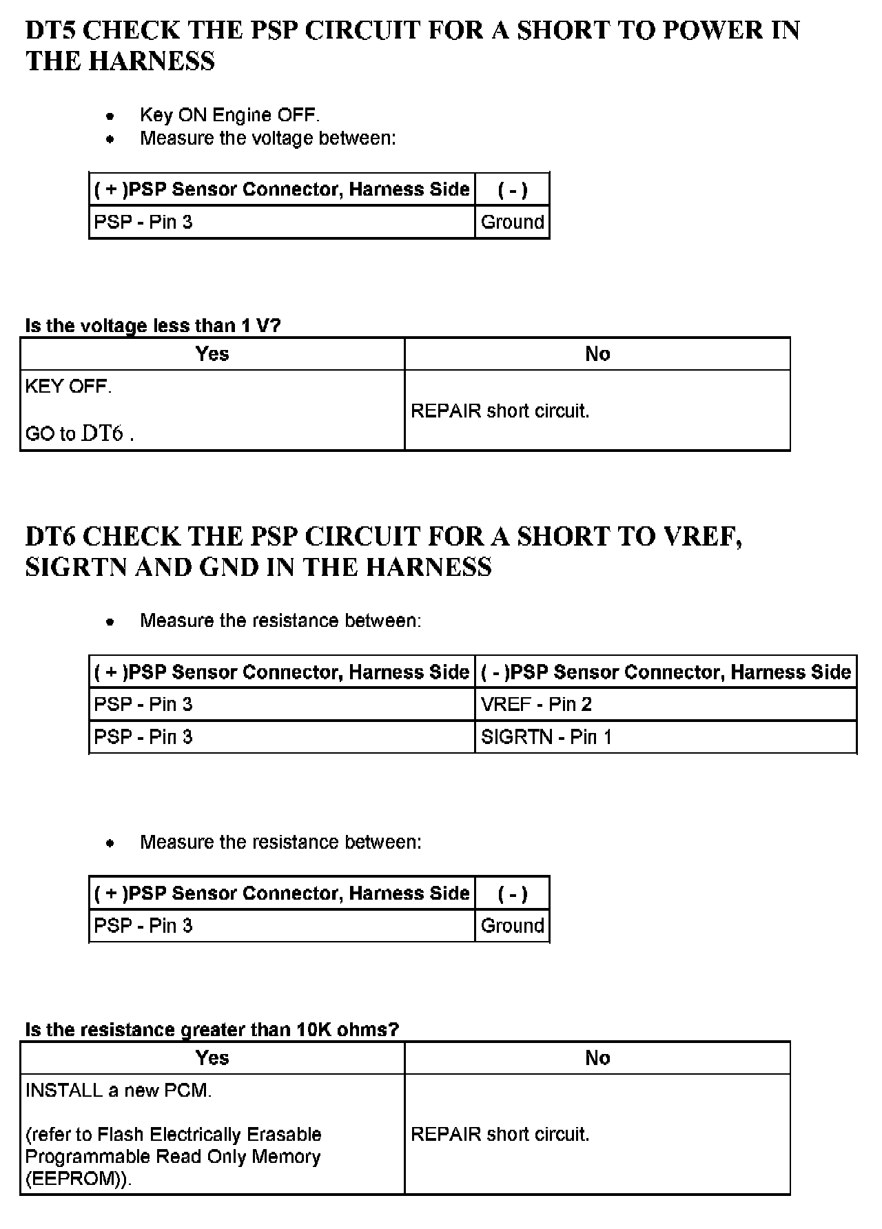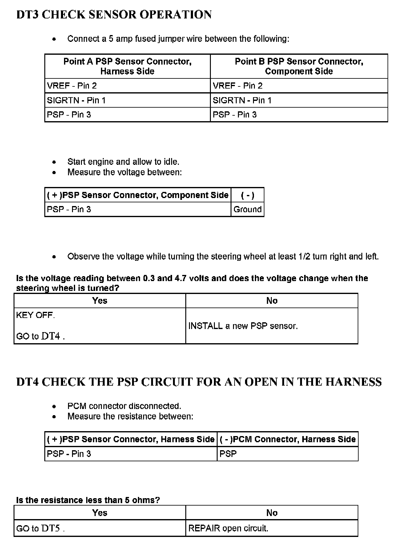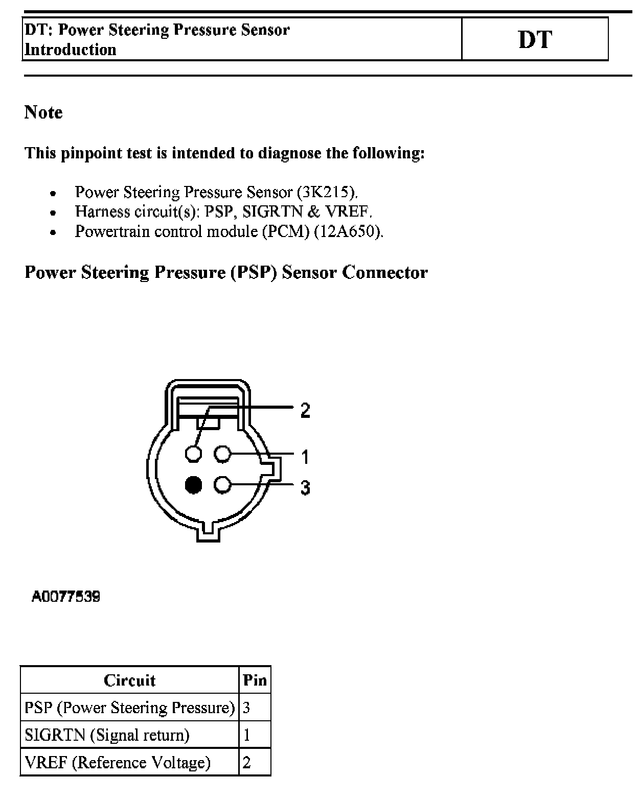 PINPOINT TEST DT: POWER STEERING PRESSURE SENSOR