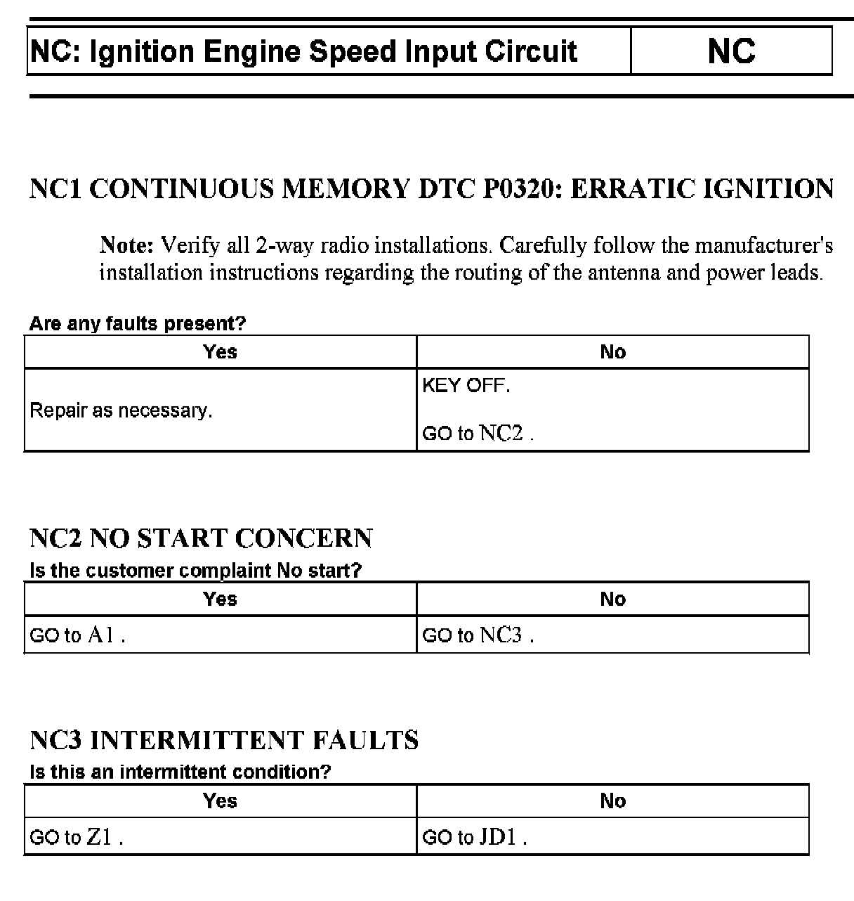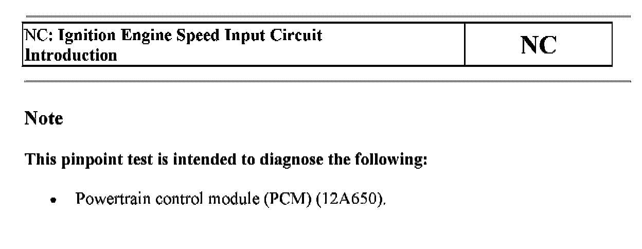 PINPOINT TEST NC: IGNITION ENGINE SPEED INPUT CIRCUIT