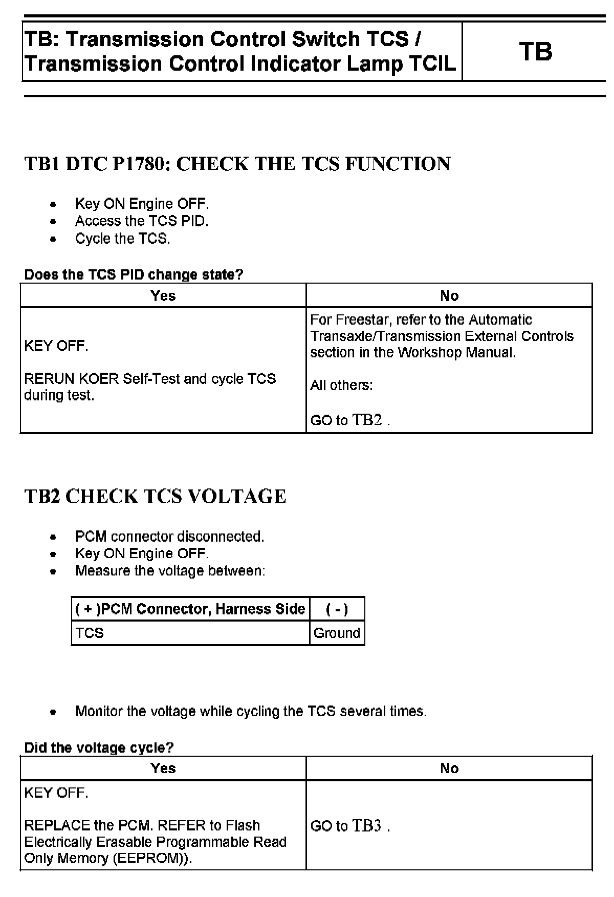 Tests TB: Trans Control Switch/Trans Control Indicator Lamp
