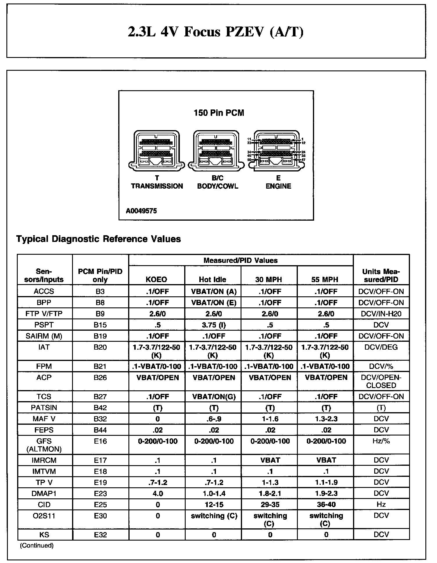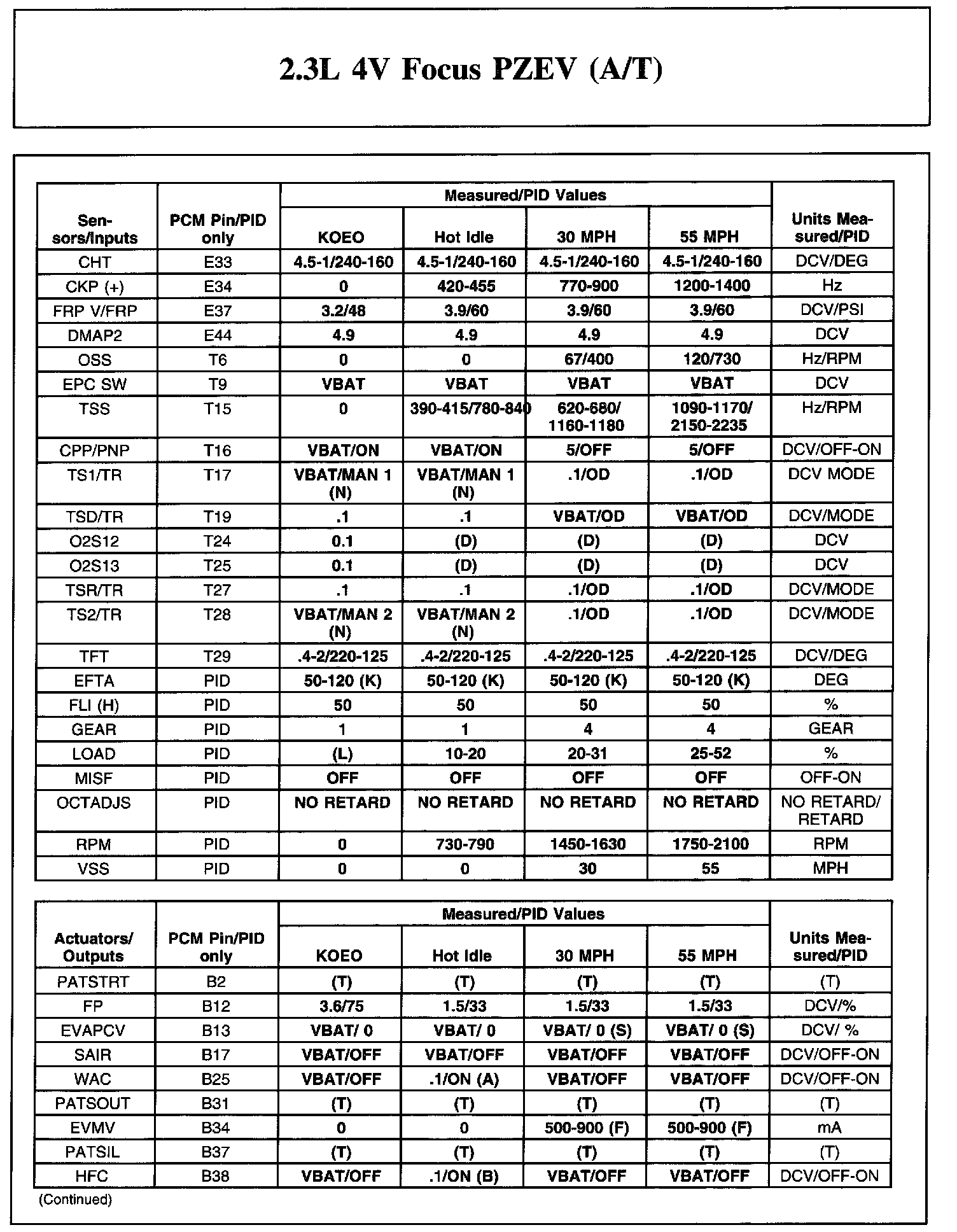 The Typical Diagnostic Reference Value Charts do not display fault PIDs. These are PIDs which indicate a hard fault with the circuit. They display a value of "YES" or "NO" and are PIDs ending with an "F".