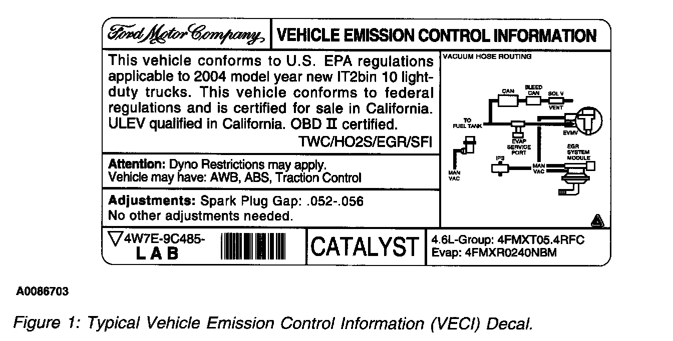Each vehicle has a VECI decal (Figure 1) containing emission control information that applies specifically to the vehicle and engine. The specifications on the decal are critical to servicing emissions systems.