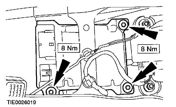 WARNING: Make sure the restraints control module (RCM) is installed correctly as detailed. The retaining bolts are part of the RCM ground circuit. Failure to follow this instruction may result in personal injury.