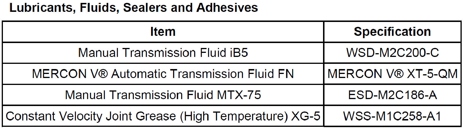 Lubricants, Fluids, Sealers and Adhesives