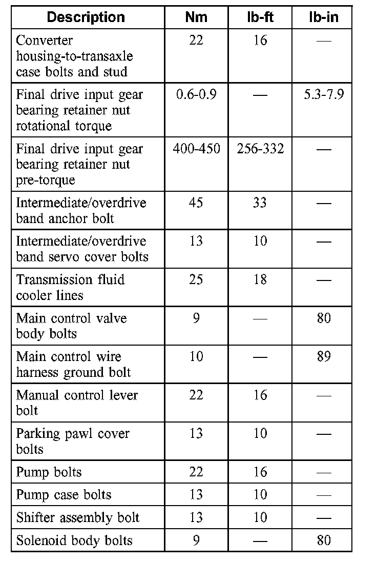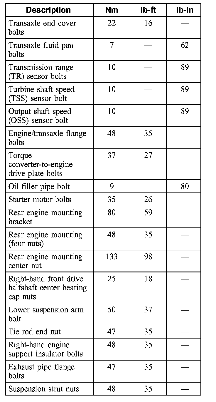 Torque Specifications