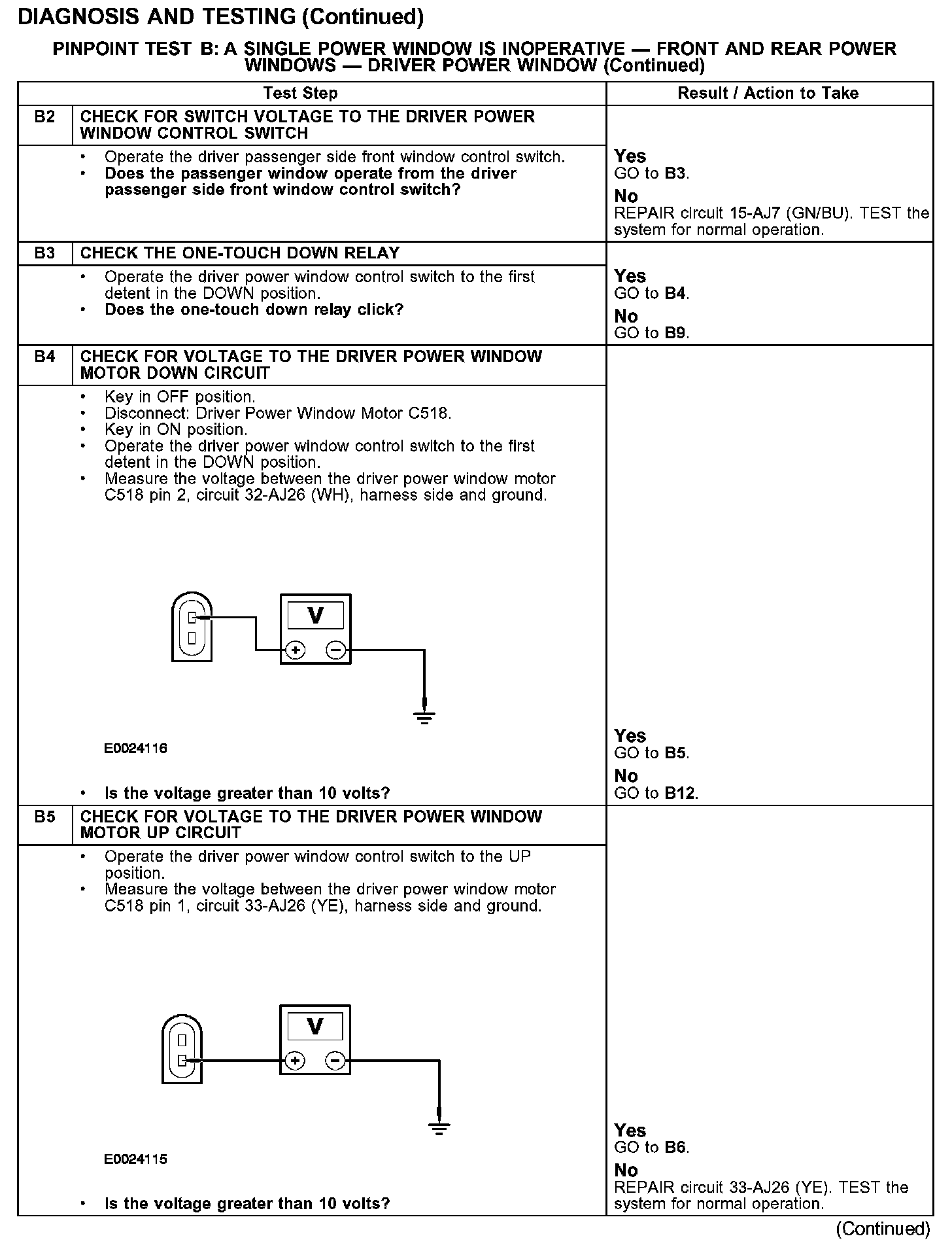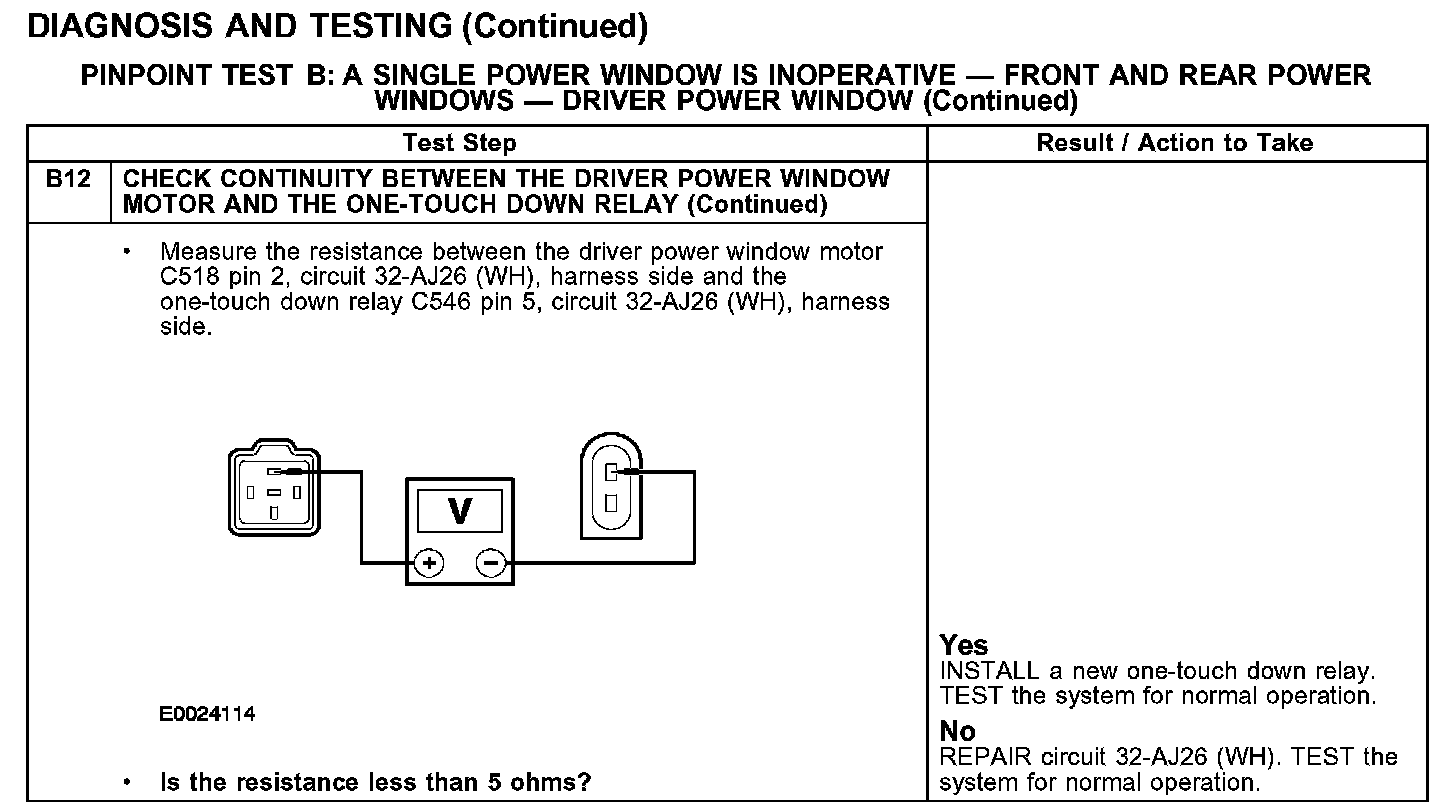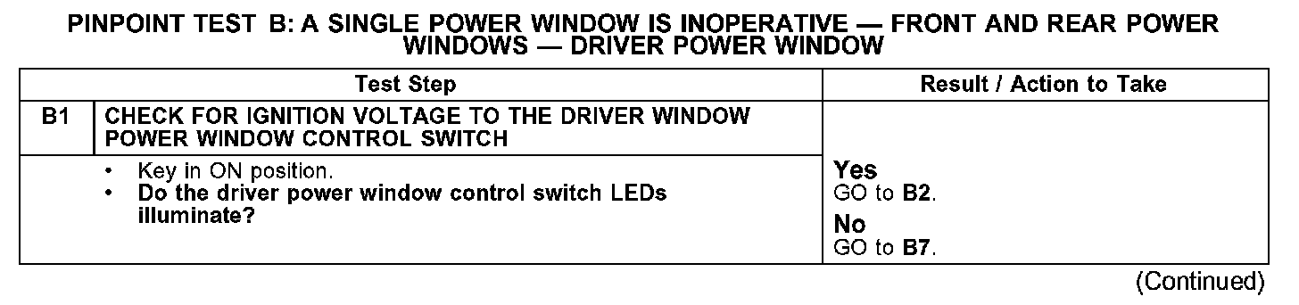 PINPOINT TEST B: A SINGLE POWER WINDOW IS INOPERATIVE - FRONT AND REAR POWER WINDOWS - DRIVER POWER WINDOW