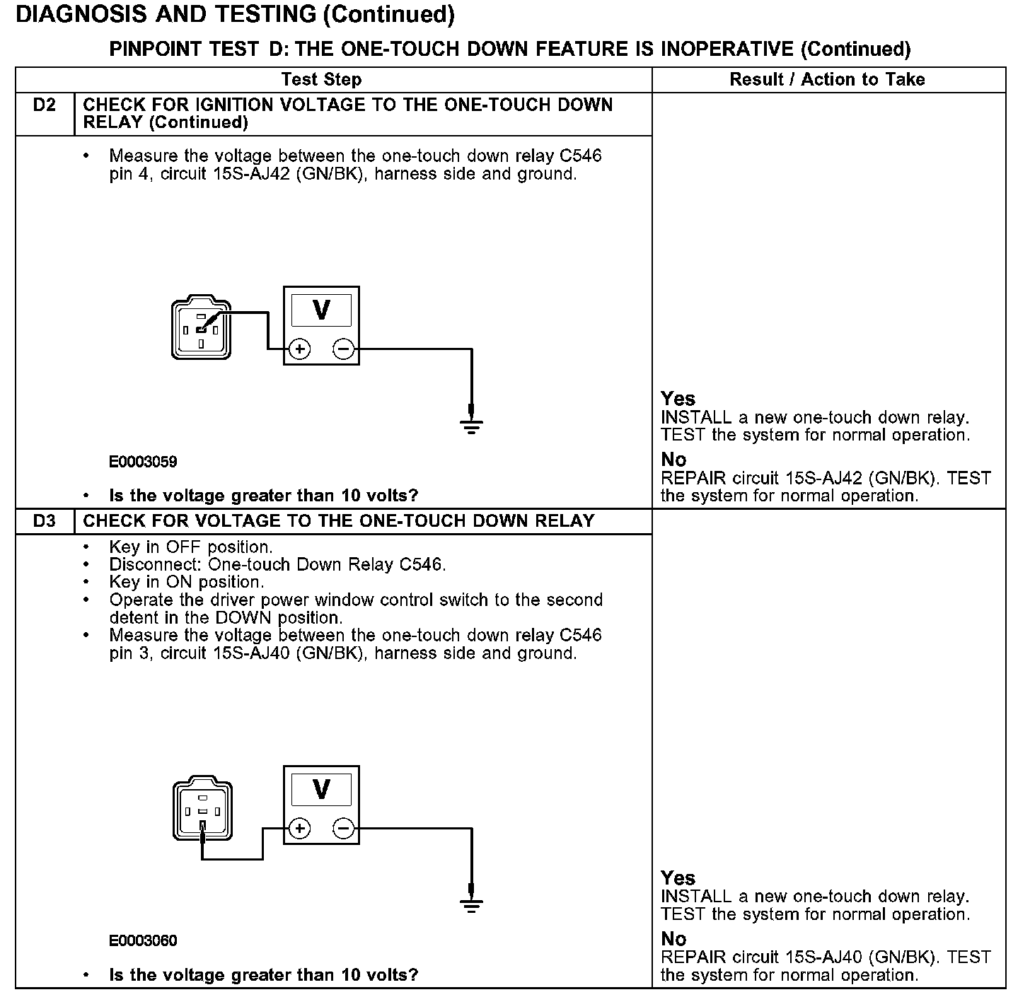 PINPOINT TEST D: THE ONE-TOUCH DOWN FEATURE IS INOPERATIVE