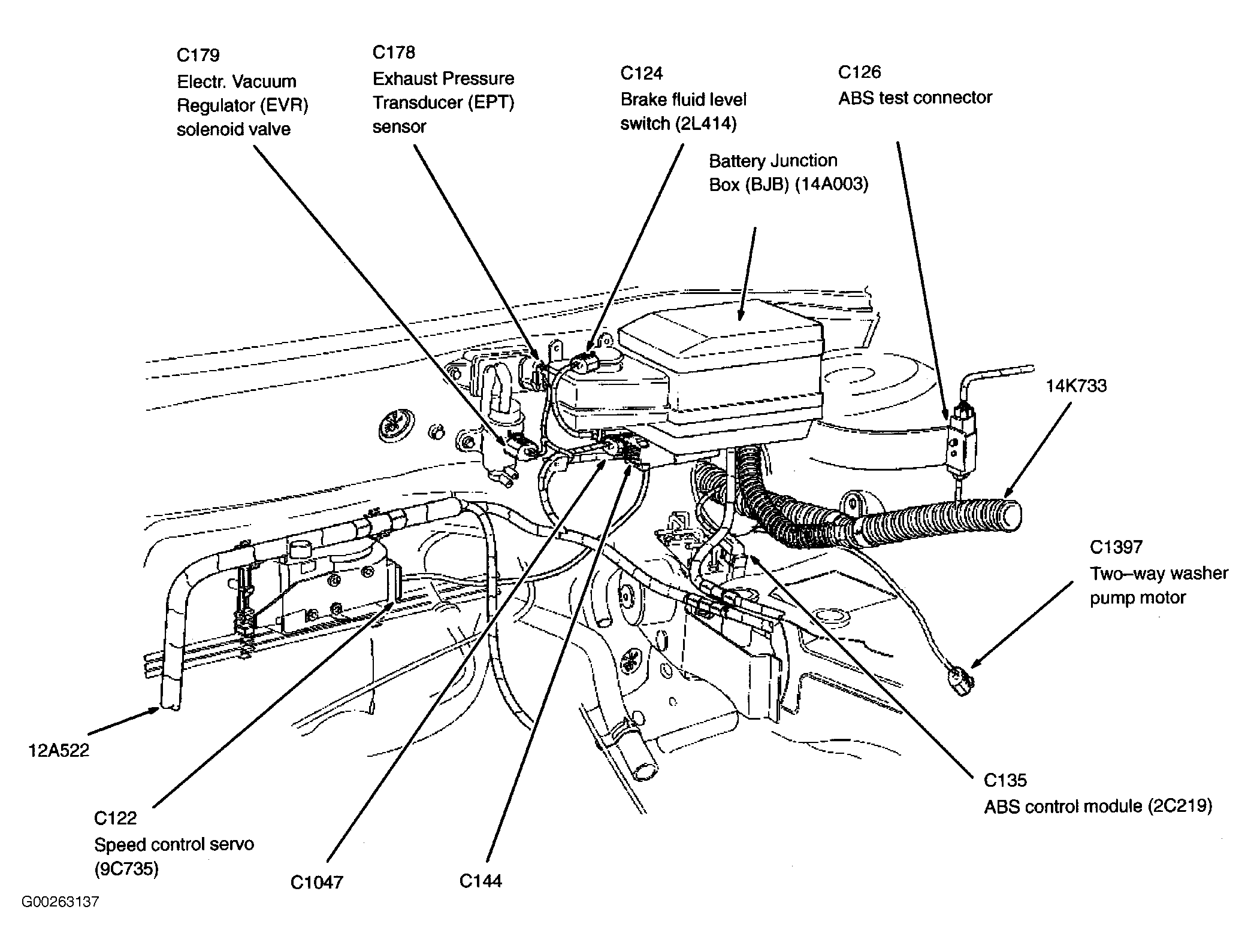Battery Junction Box (BJB) In left rear corner of engine compartment. See Figure .