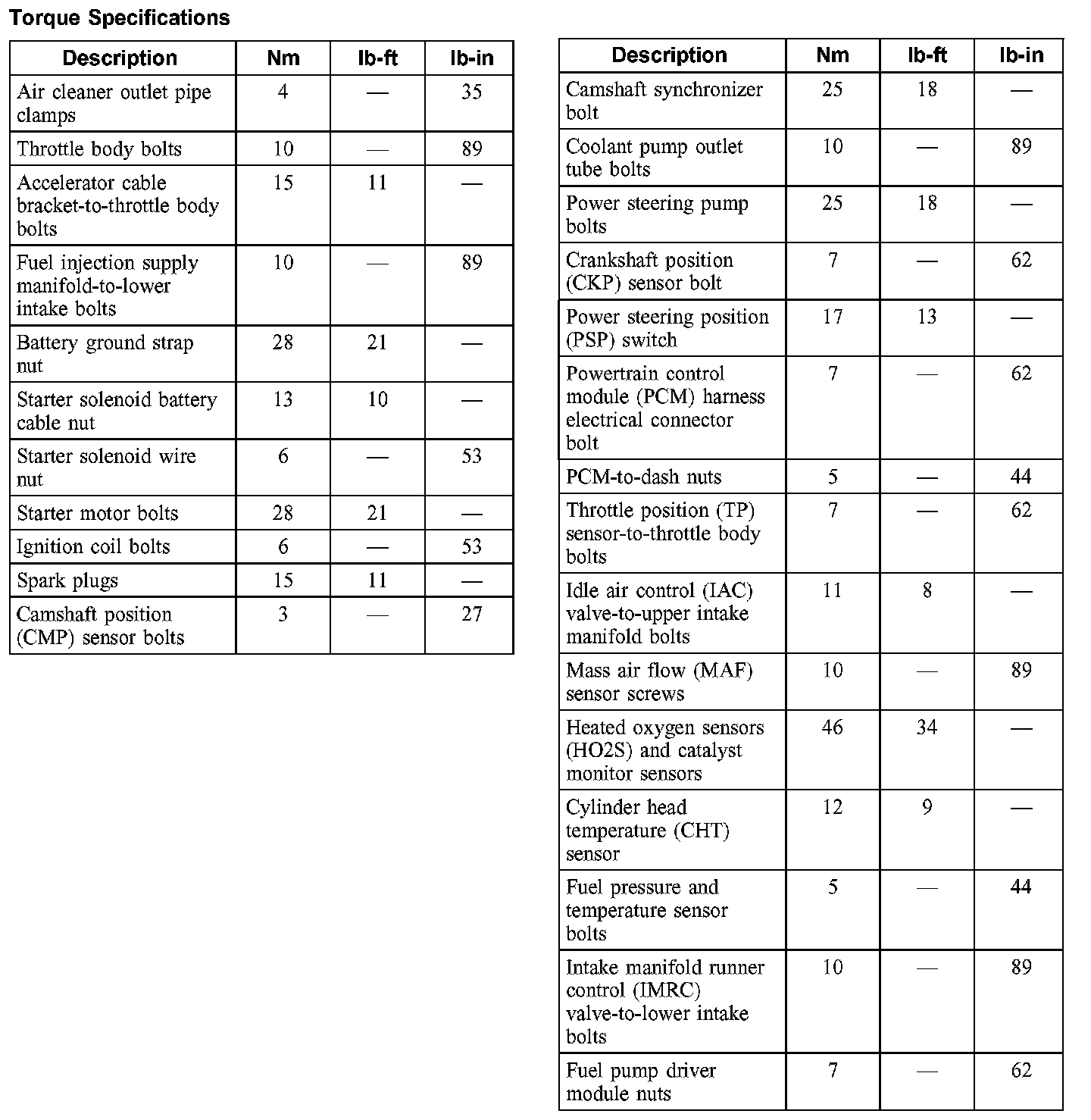 Torque Specifications: