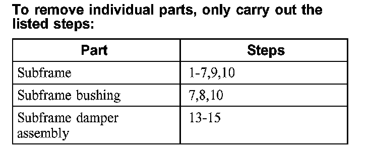 2. If required to repair the subframe, the subframe bushings may be removed and reinstalled.