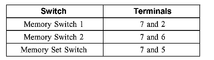 To check the memory set switch LED, connect the positive meter lead to terminal 7 and the negative lead to terminal 1. The meter should indicate greater than 0.3 volts. Reversing the leads, the meter should read OL.