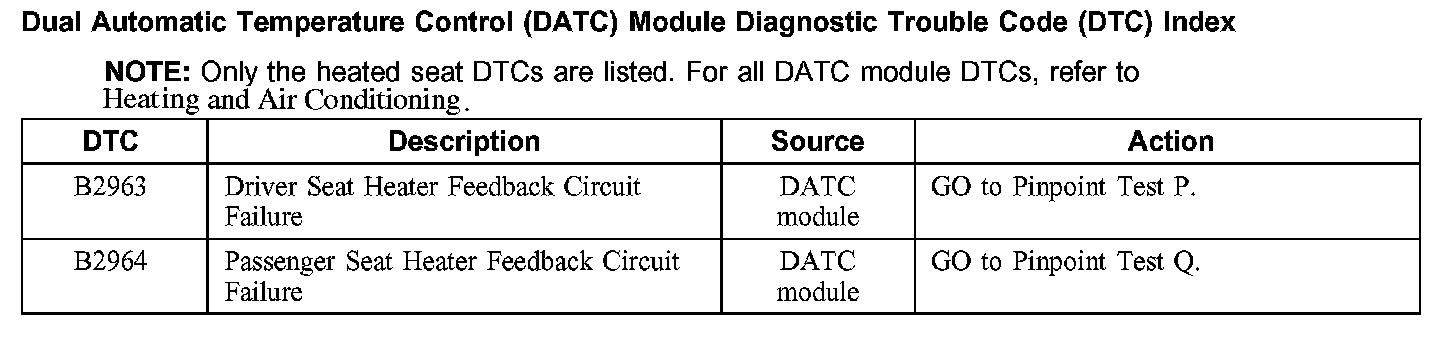 Dual Automatic Temperature Control (DATC) Module Diagnostic Trouble Code (DTC) Index