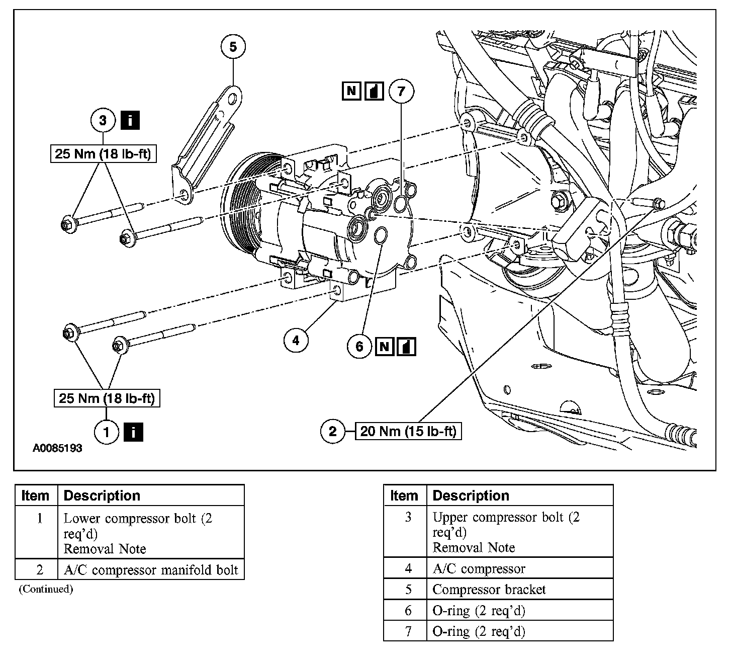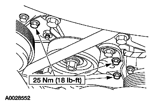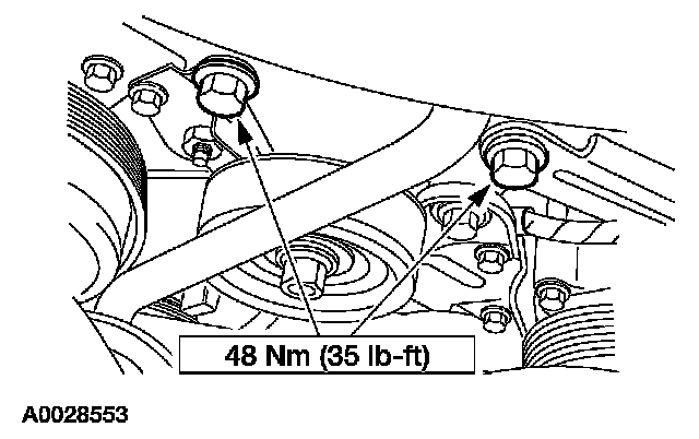 1. NOTE: The upper compressor bolts must be removed with the A/C compressor.