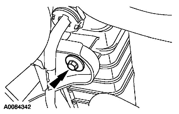10. Remove the RH cooling fan and shroud assembly bolt.