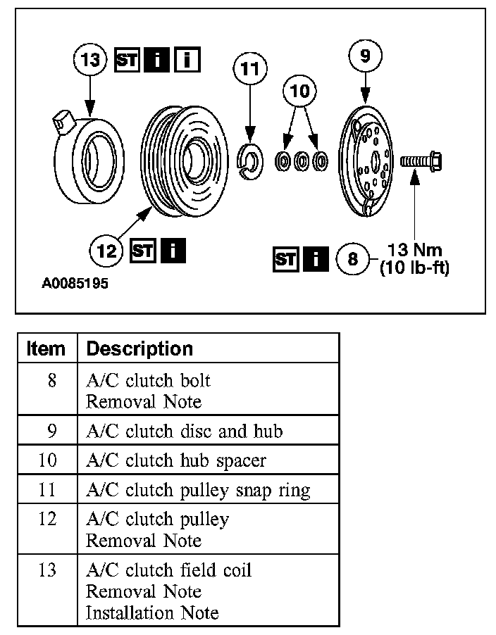 Item 13: A/C Clutch Field Coil Removal Note