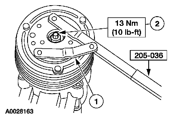 1. CAUTION: Do not use air tools. Damage to the A/C clutch pulley or A/C compressor may result.