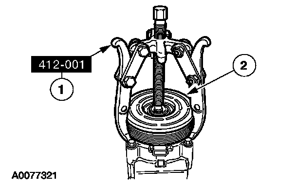 2 Remove the A/C clutch pulley.
