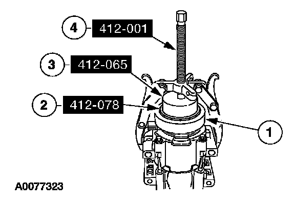 3 Place the special tool 412-065 on the special tool 412-078.
