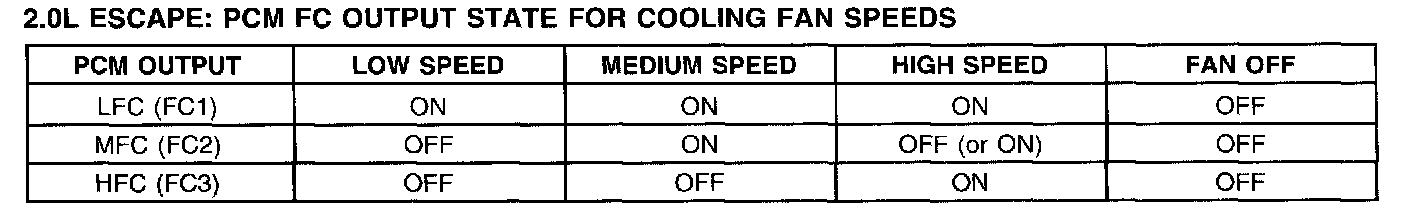 2.0L Escape: PCM FC Output State For Cooling Fan Speeds Chart: