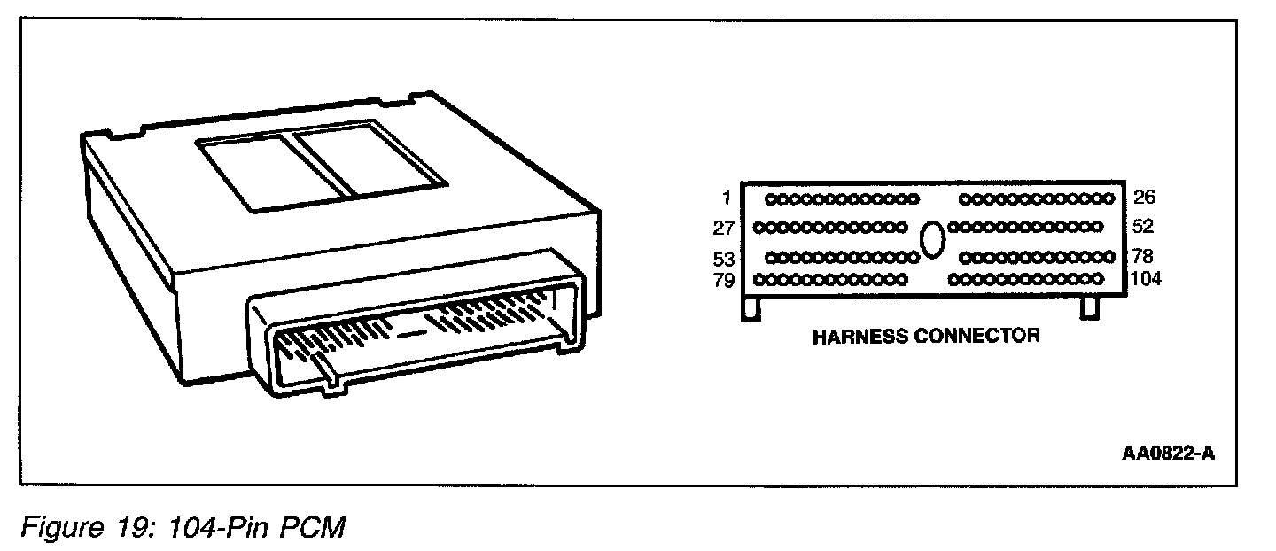The center of the Electronic EC system is a microprocessor called the powertrain control module (PCM). The PCM receives input from sensors and other electronic components (switches, relays). Based on information received and programmed into its memory, the PCM generates output signals to control various relays, solenoids and actuators. There are several different types of PCM's in use for this model year. Refer to the vehicle PCM application table for PCM type and their applications.