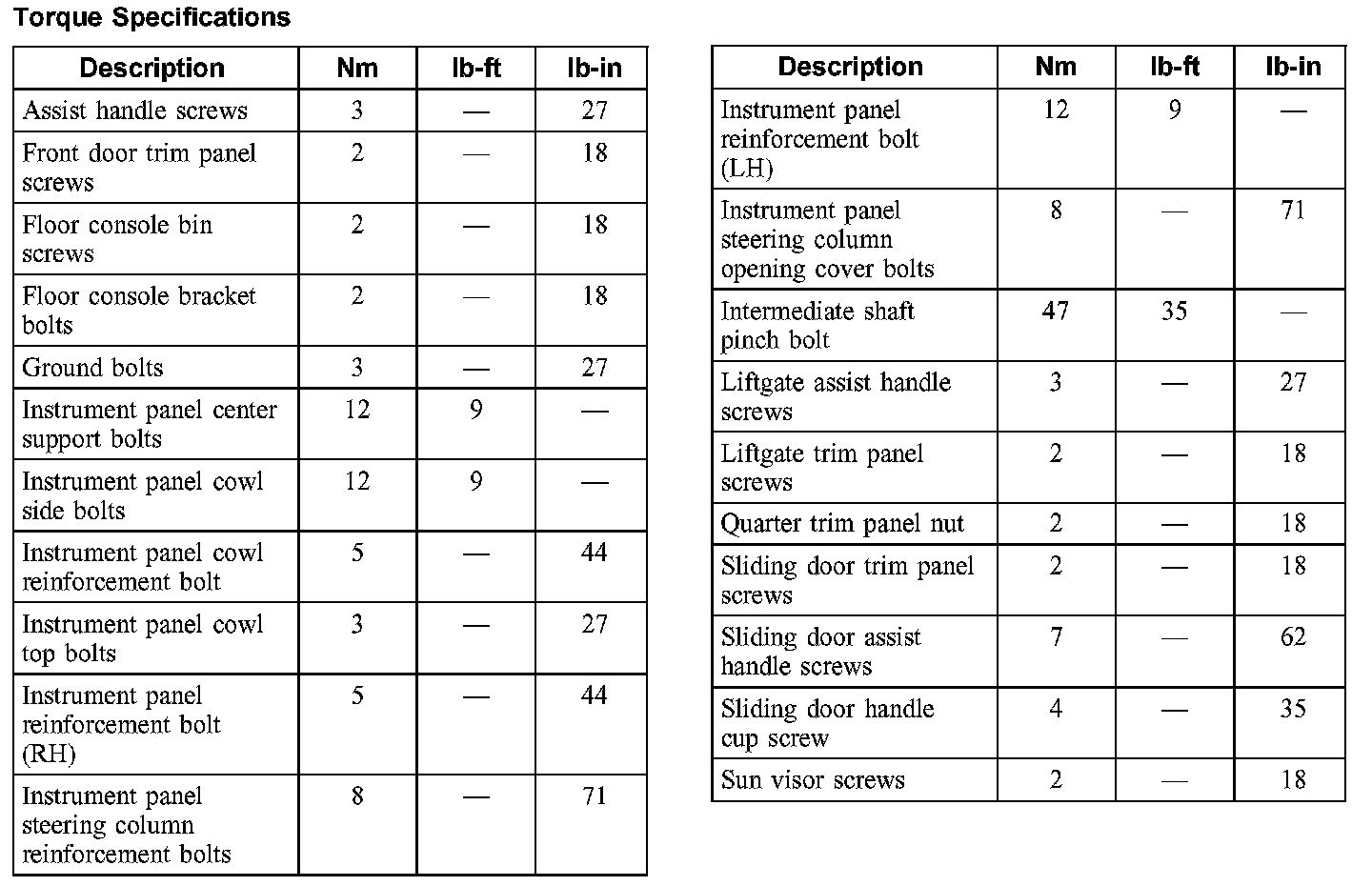 Torque Specifications: