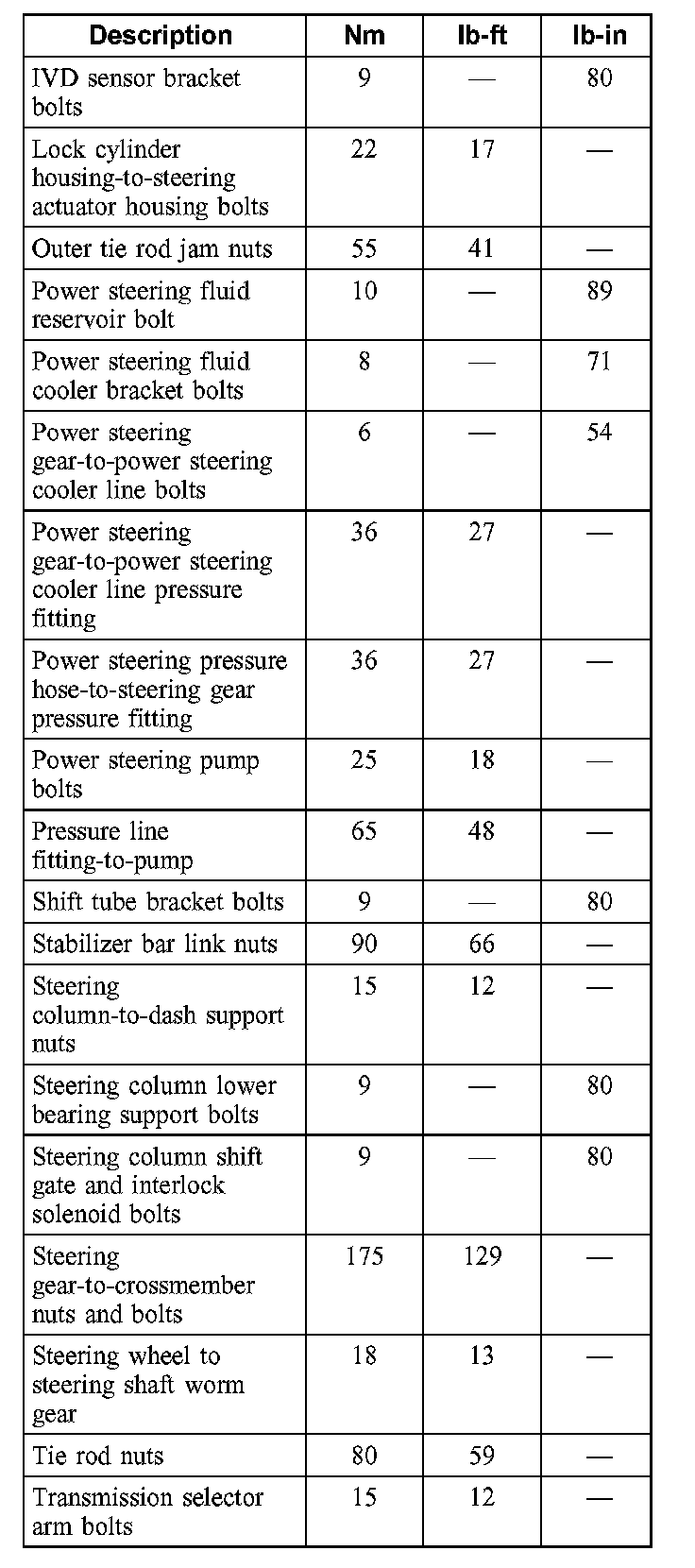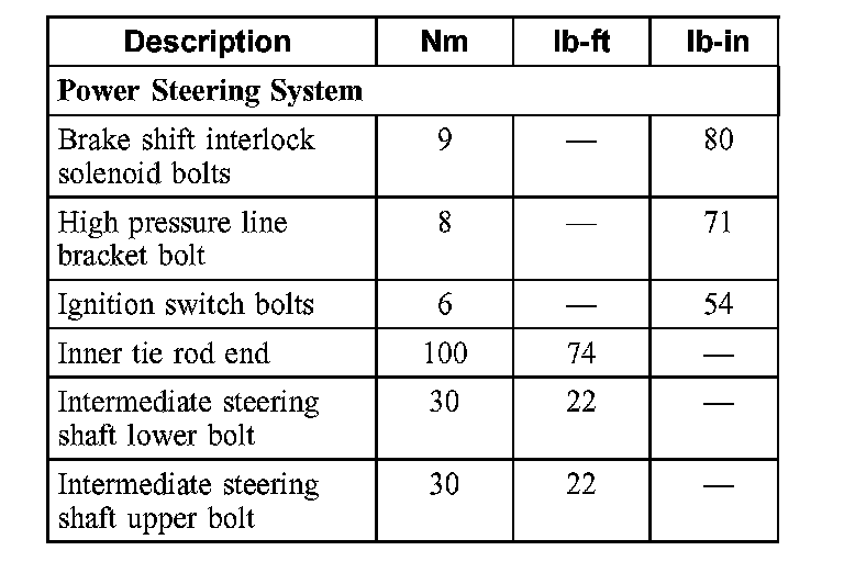 Torque Specifications