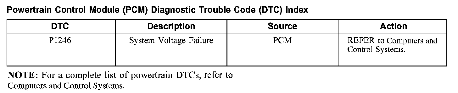 Powertrain Control Module Diagnostic Trouble Code (DTC) Index