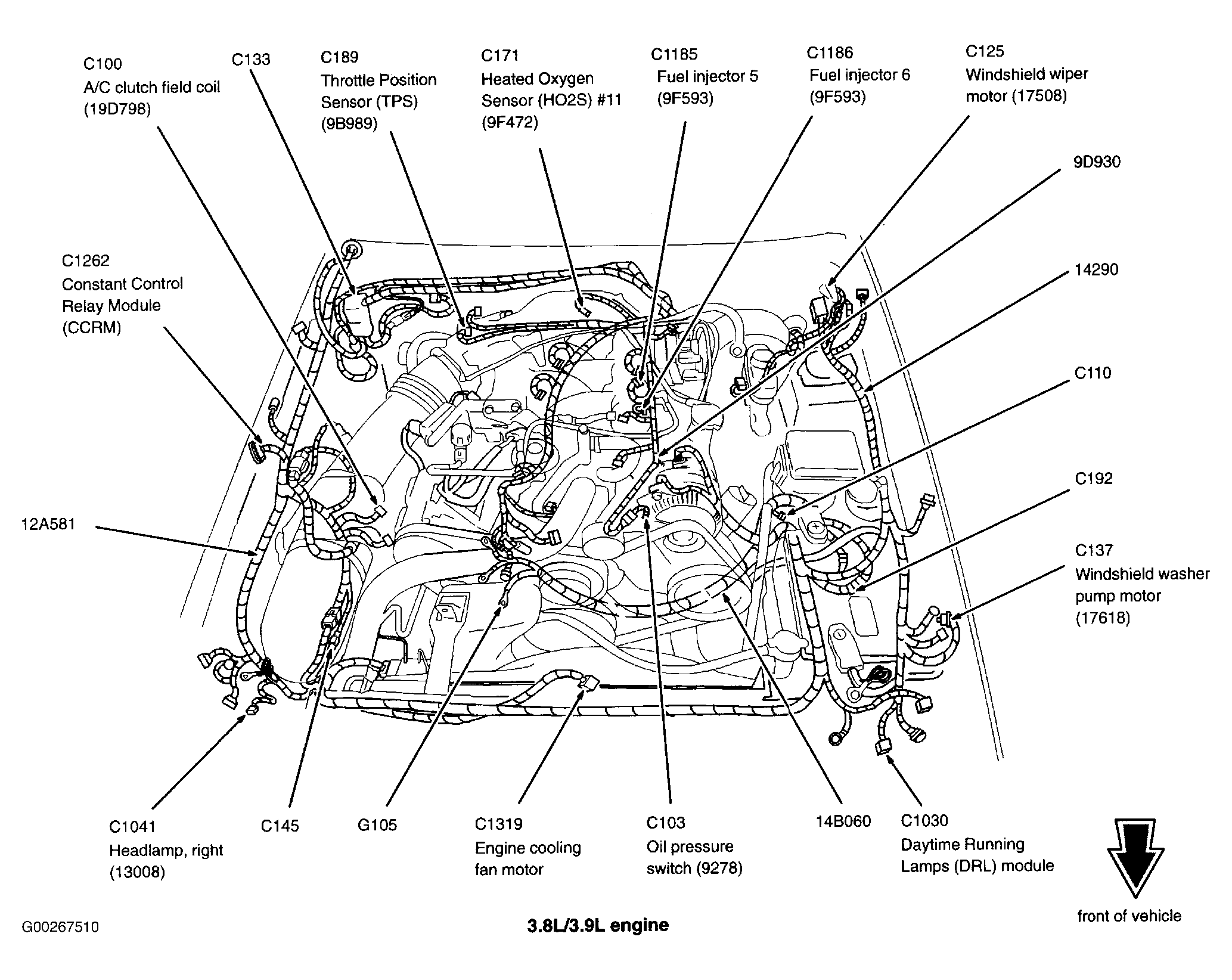 Constant Control Relay Module (CCRM) (3.8L) Inside right front fender, behind air filter housing. See Figure.
