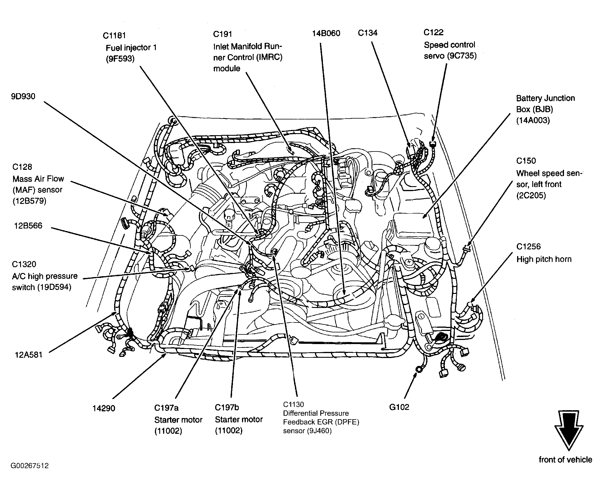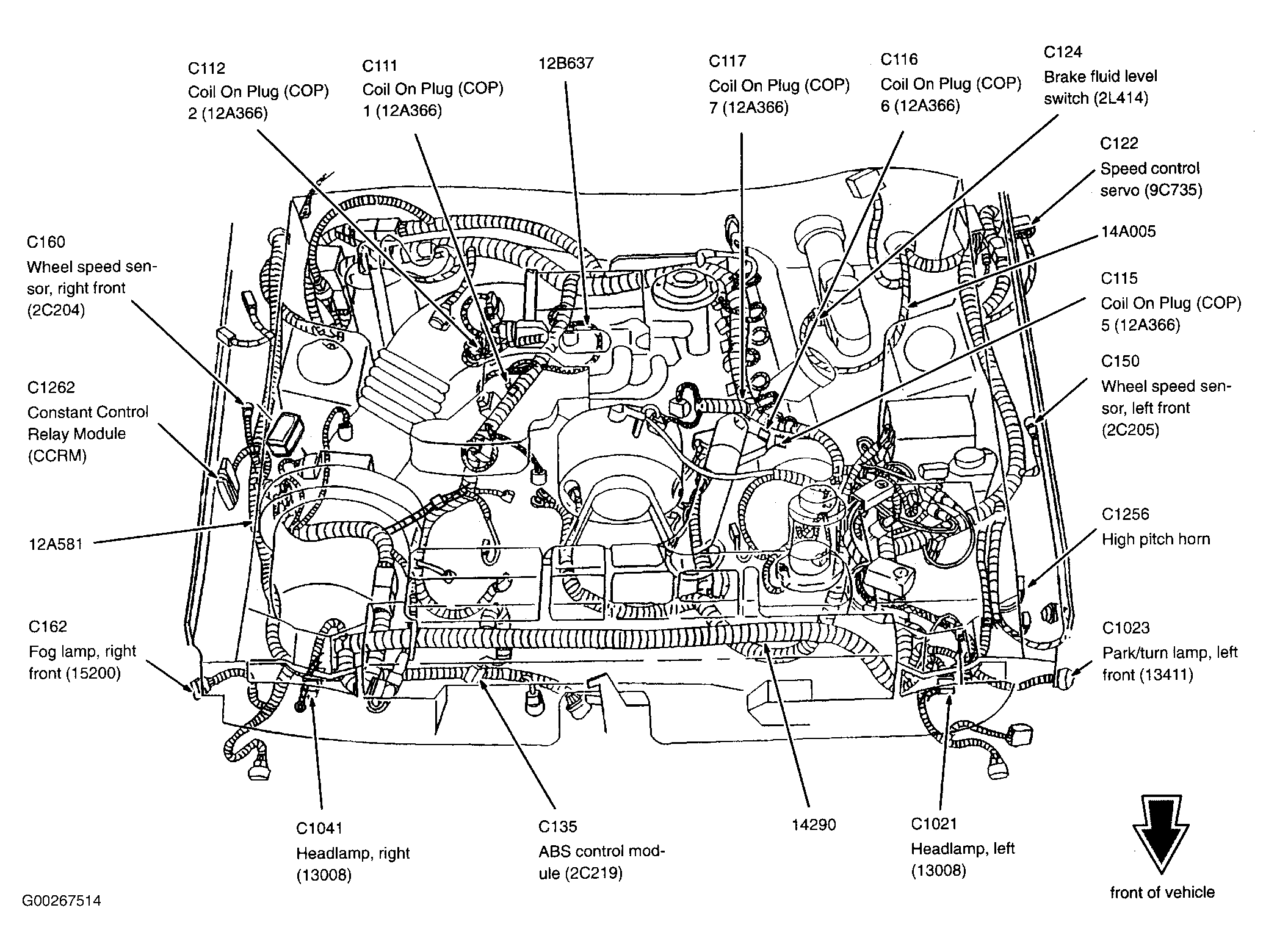 Constant Control Relay Module (CCRM) (4.6L 2V) Inside right front fender, behind air filter housing. See Figure.