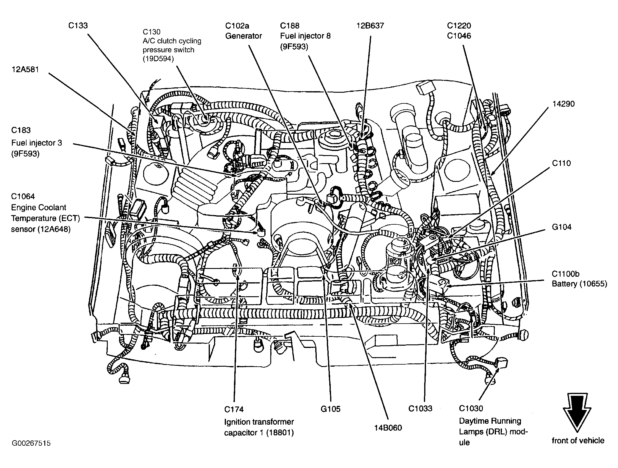 Daytime Running Lamps Module (4.6L 2V)) Left front corner of engine compartment. See Figure.