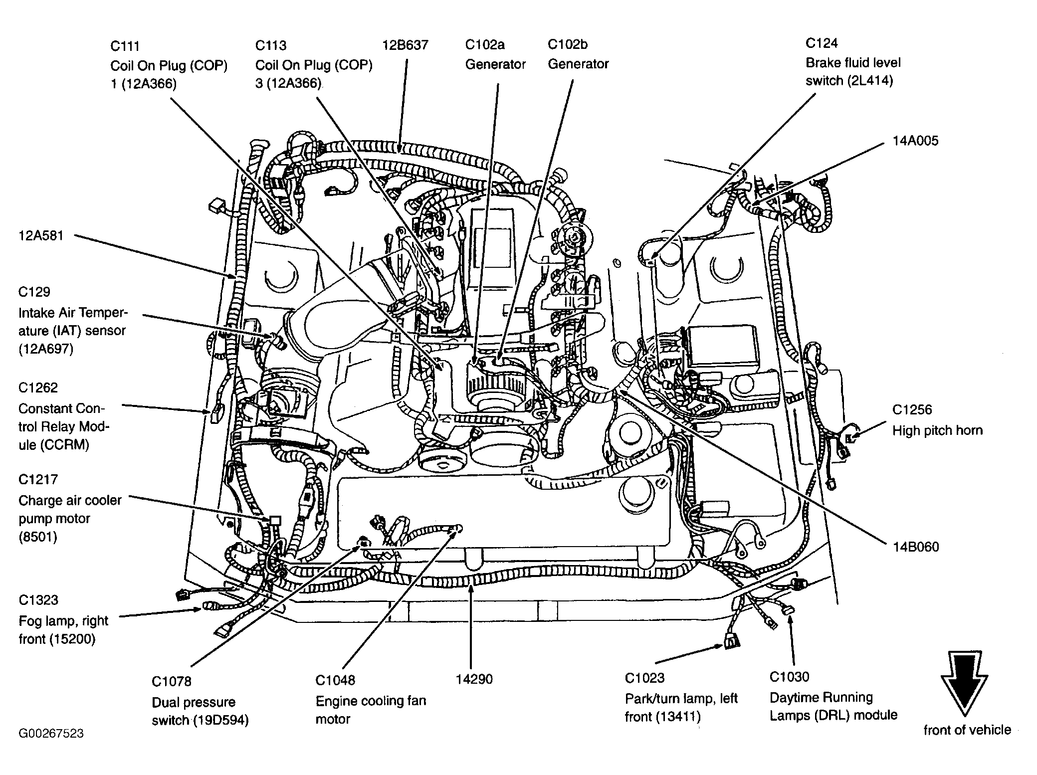 Daytime Running Lamps (DRL) Module (Cobra) Left front corner of engine compartment. See Figure.
