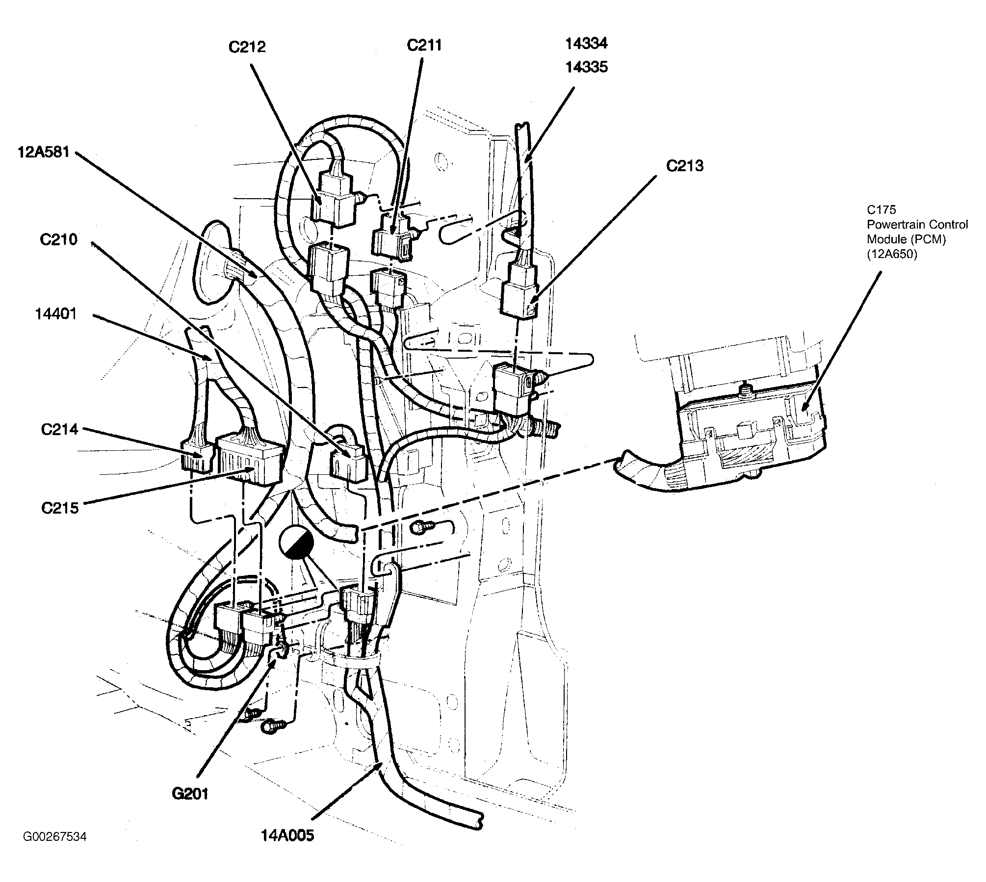 Powertrain Control Module Behind right kick panel. See Figure.