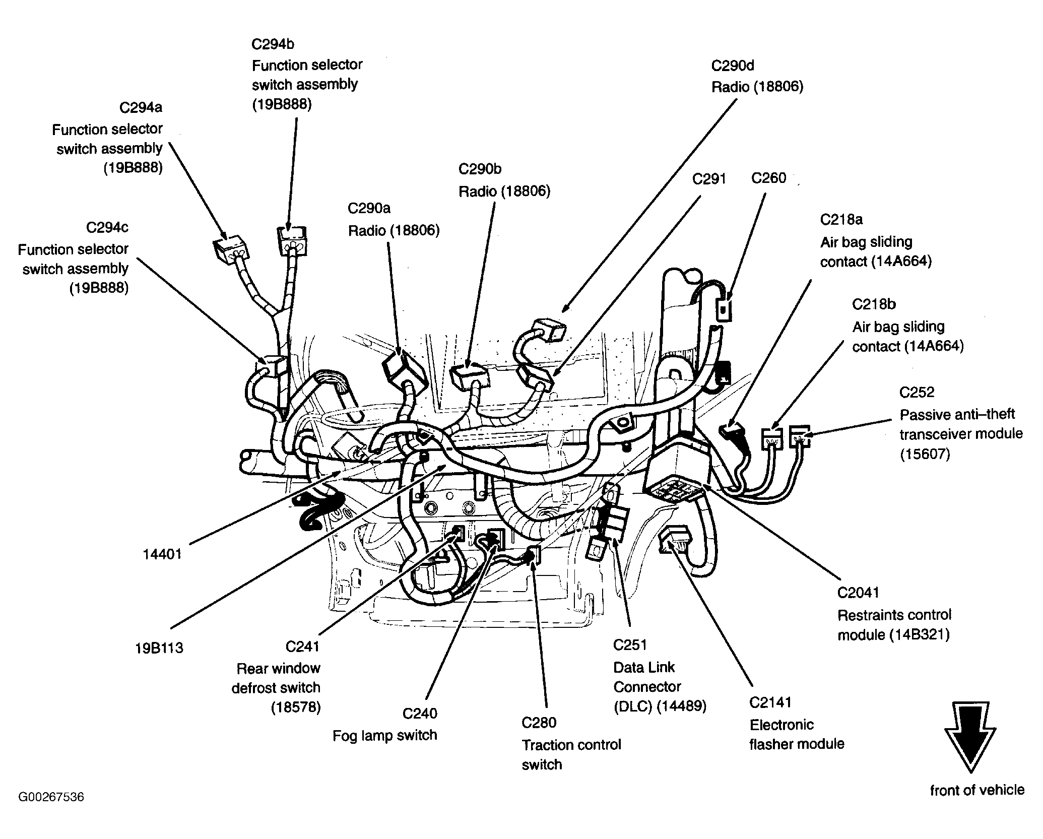 Restraints Control Module Behind lower center of dash. See Figure.