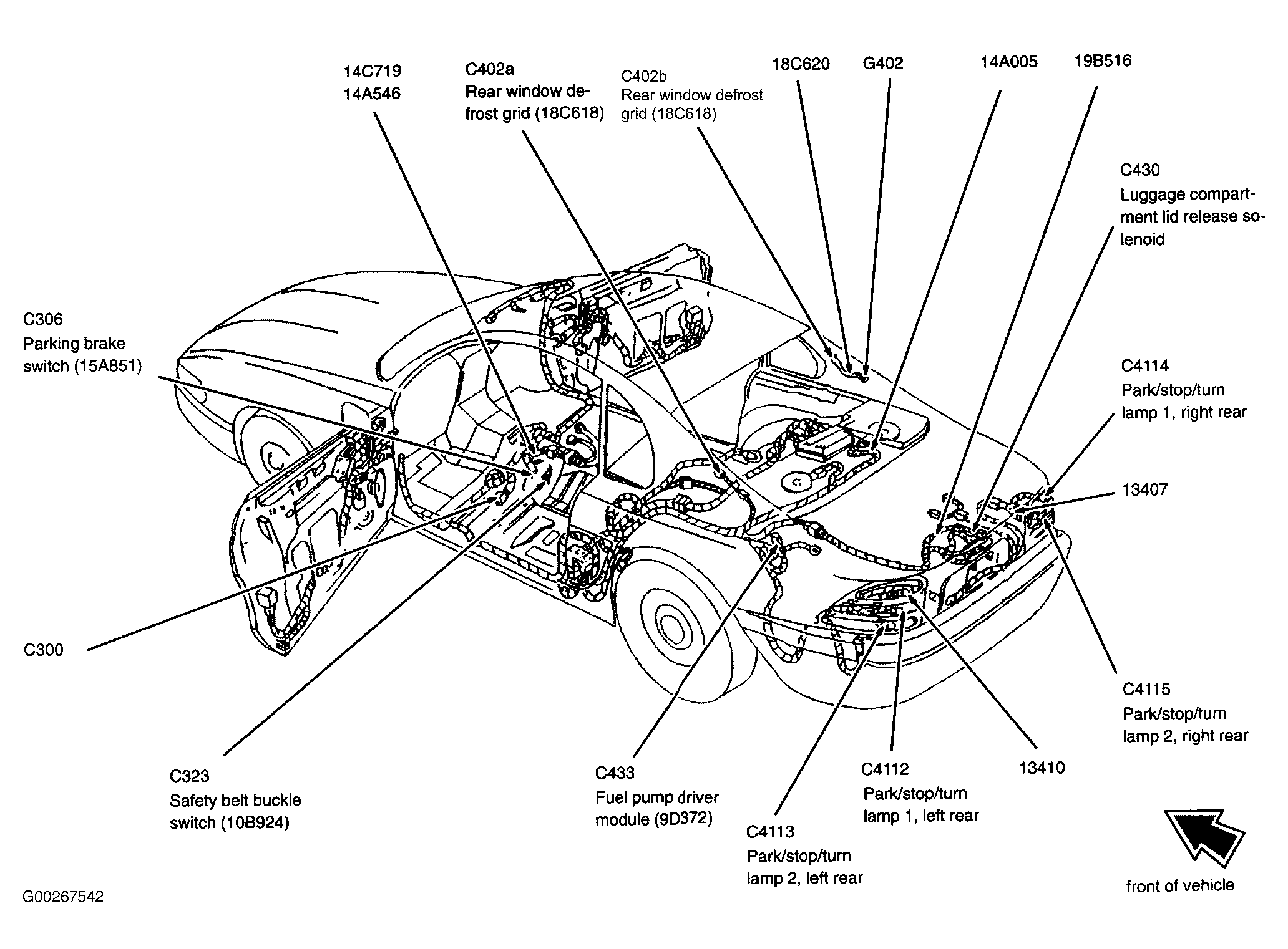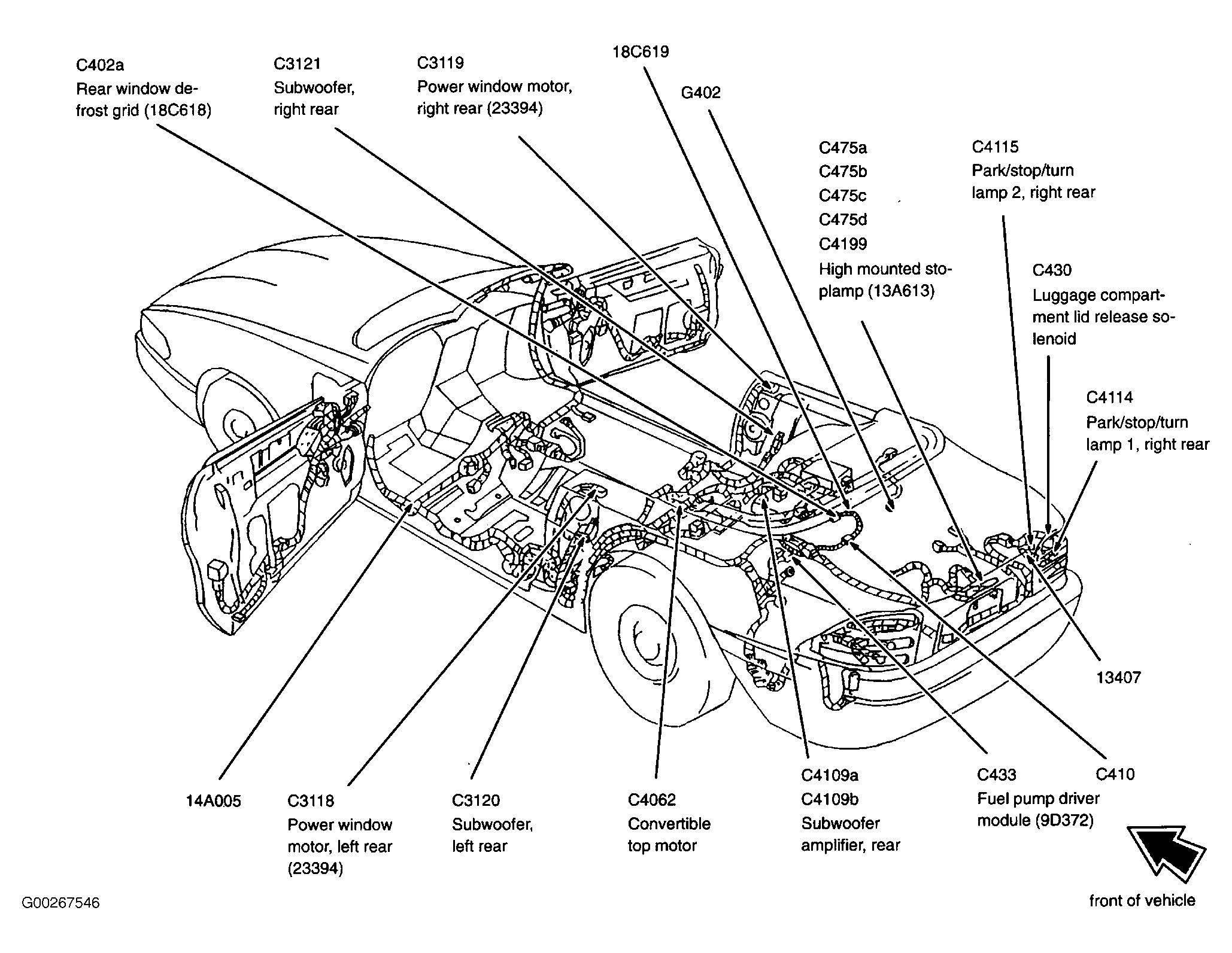 Fuel Pump Driver Module (Convertible) Underside of luggage compartment. See Figure.