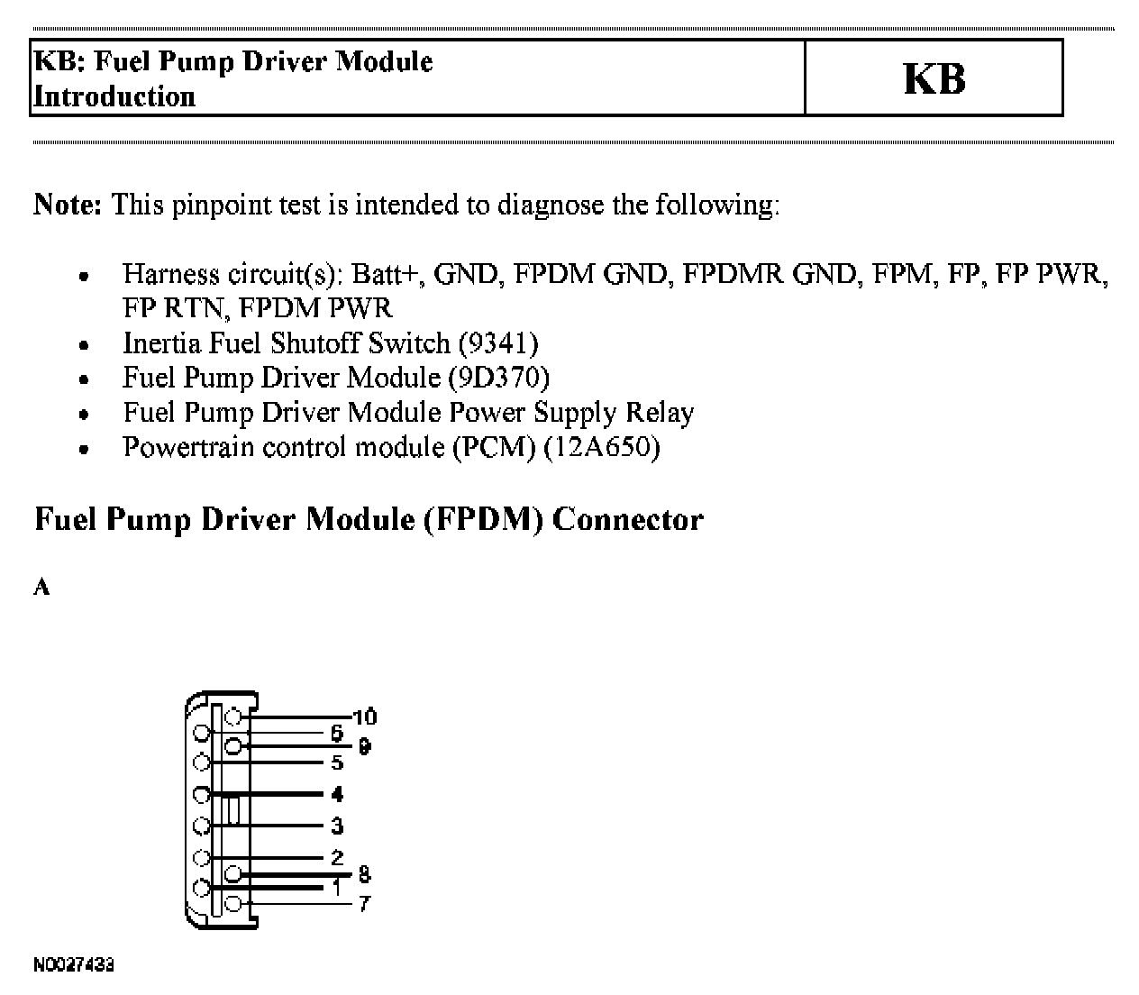 PINPOINT TEST KB: FUEL PUMP DRIVER MODULE