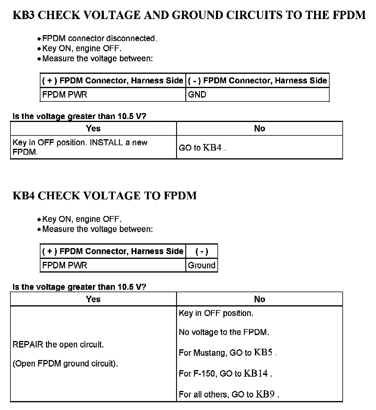 Home >> Ford >> 2004 >> Mustang V6-3.8L VIN 4 >> Repair and Diagnosis >> Powertrain Management >> Computers and Control Systems >> Testing and Inspection >> Pinpoint Tests >> Tests KB: Fuel Pump Driver Module
