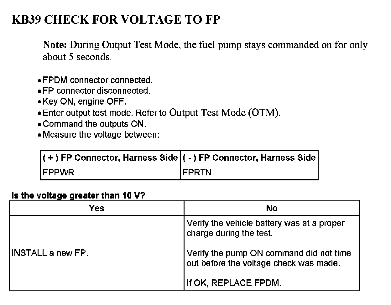 Tests KB: Fuel Pump Driver Module