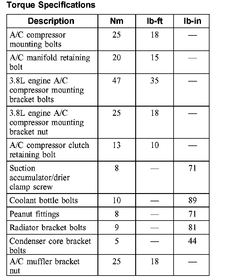 Torque Specifications: